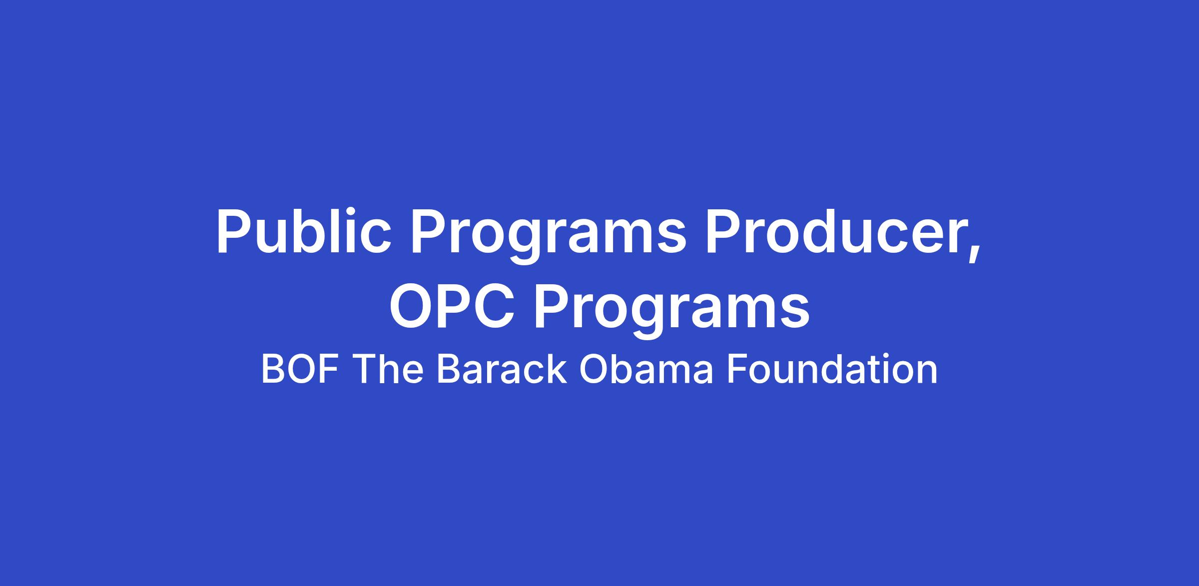 Successfully produce and implement public programs that advance the OPC Programming Strategy and support the broader mission and goals of the Obama Presidential Center