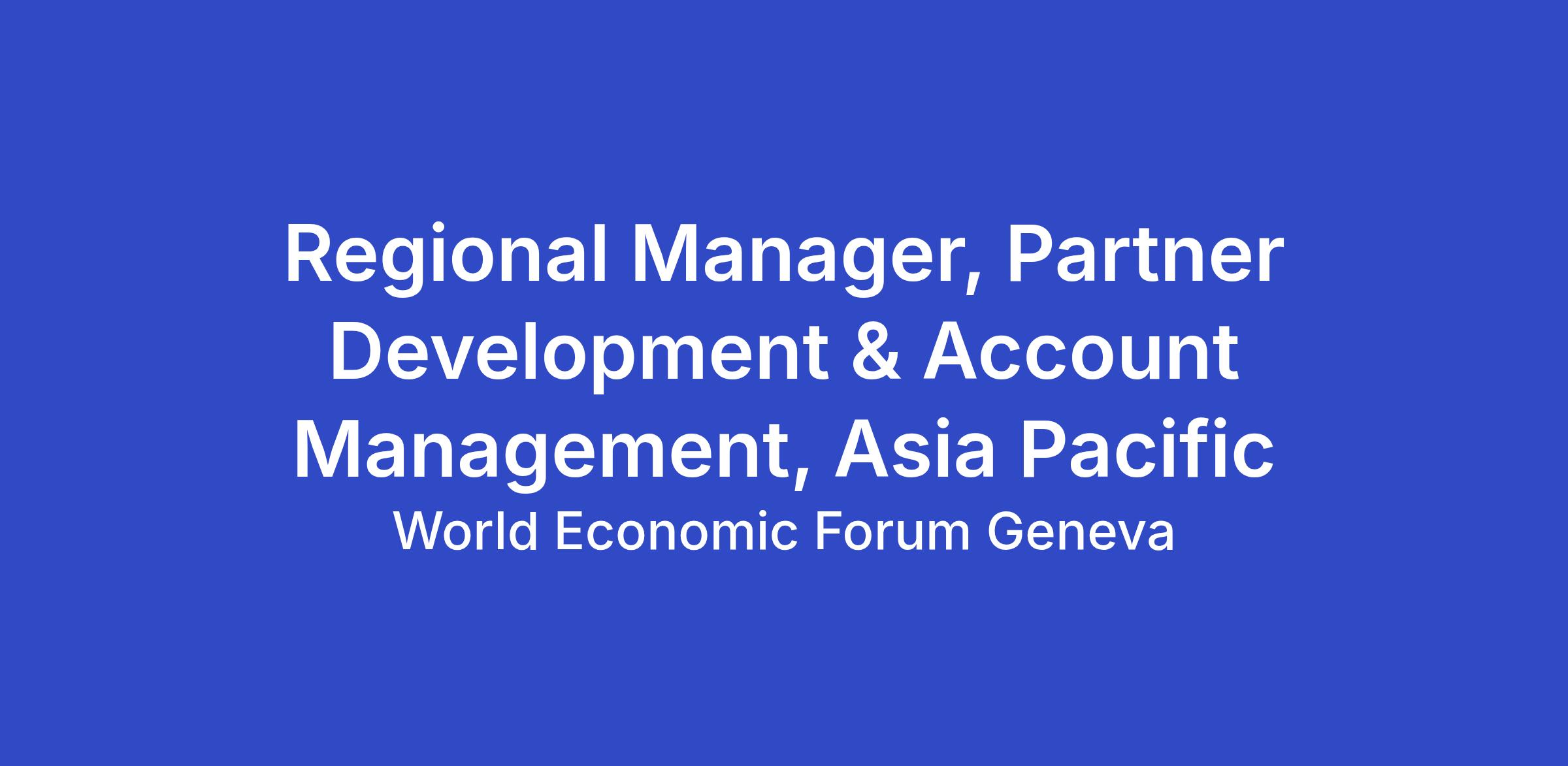 Regional Manager, Partner Development & Account Management, Asia Pacific