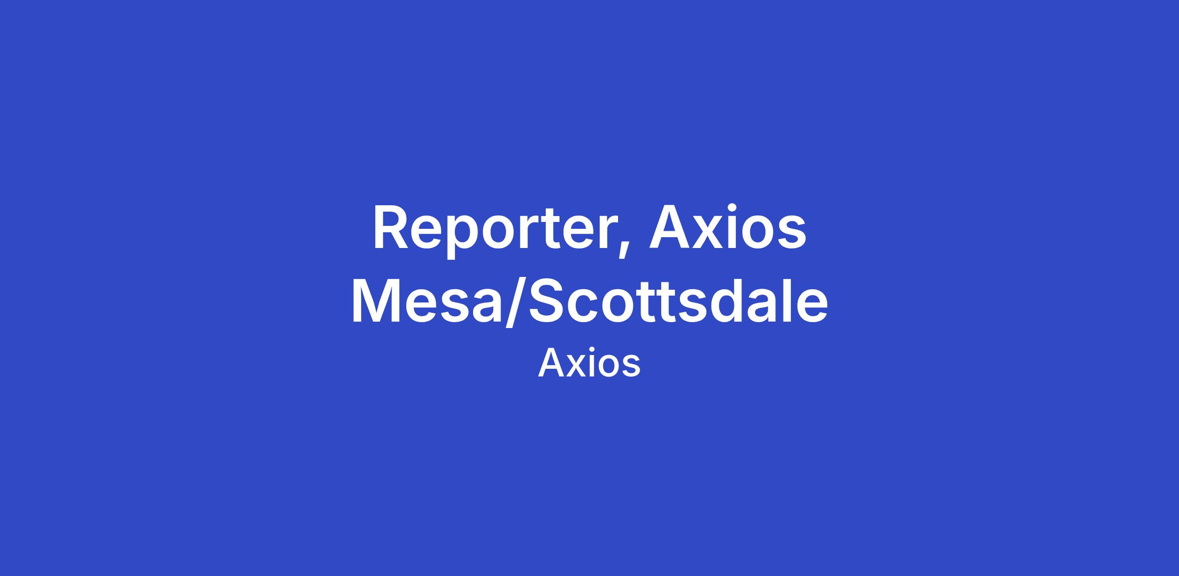 The big picture: Axios is a company dedicated to providing trustworthy, award-winning news content in an audience-first format. We are hiring a Reporter to cover Scottsdale and Mesa, Ariz. as part of our growing local news initiative, which is extending our mission to America’s hometowns.