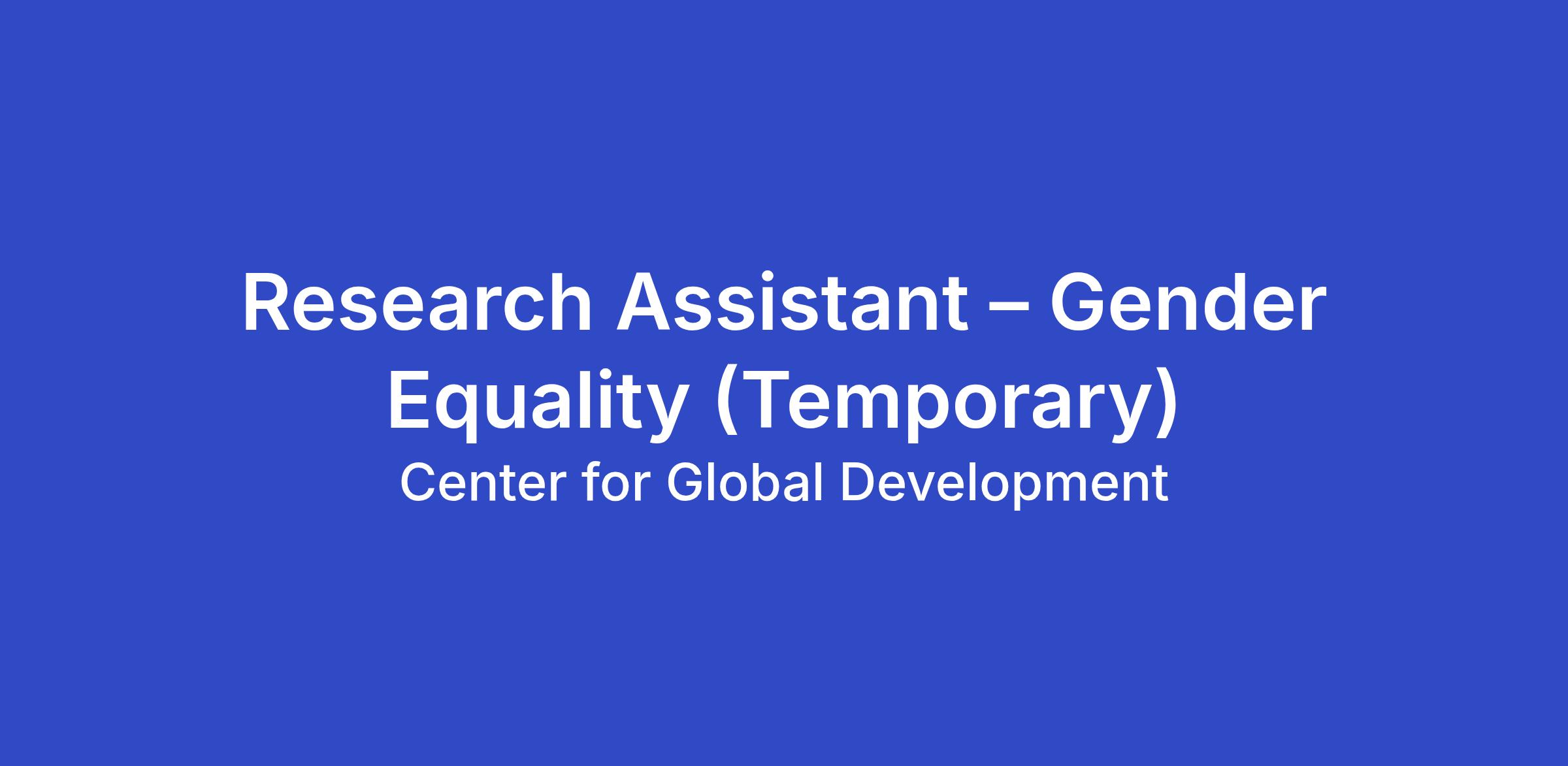 The Center for Global Development, an independent, non-partisan research organization, seeks a full-time, temporary Research Assistant for its Gender Equality and Inclusion program in the Washington, DC office. The Research Assistant will perform a range of project research, data analysis, policy analysis, administrative support and organizational duties.The successful candidate will have strong quantitative skills and experience doing data cleaning, collation, and statistical analysis in Stata and/or other software packages. Strong analytical, writing, organizational and administrative skills will also be required, and the best candidates should demonstrate interest and research experience on policies and practices relating to international development. Experience in and an interest in gender equality and inclusion is a plus, but not a requirement.Research Assistants are typically recent undergraduates with an interest in gaining research, policy, programmatic operations, and project management experience before going to graduate studies. Candidates with master's degrees may apply with the understanding they will accept an entry-level role that includes administrative responsibilities.Note that this position is a temporary, fixed-term position for six months, from approximately late May to late November 2026.