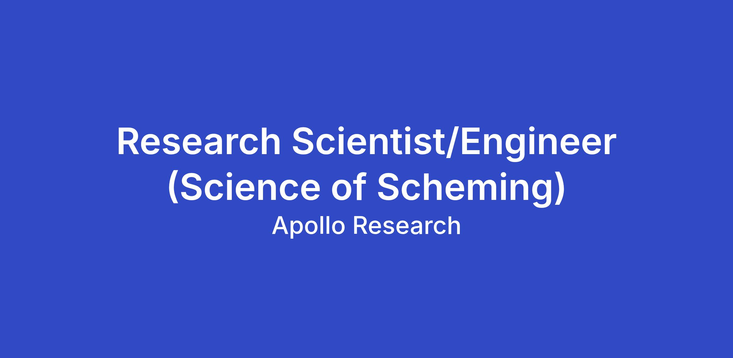 We want to develop a “Science of Scheming”. The goal is ambitious and we’re looking for Research Scientists and Research Engineers who are excited to build a new hard science from the ground up.