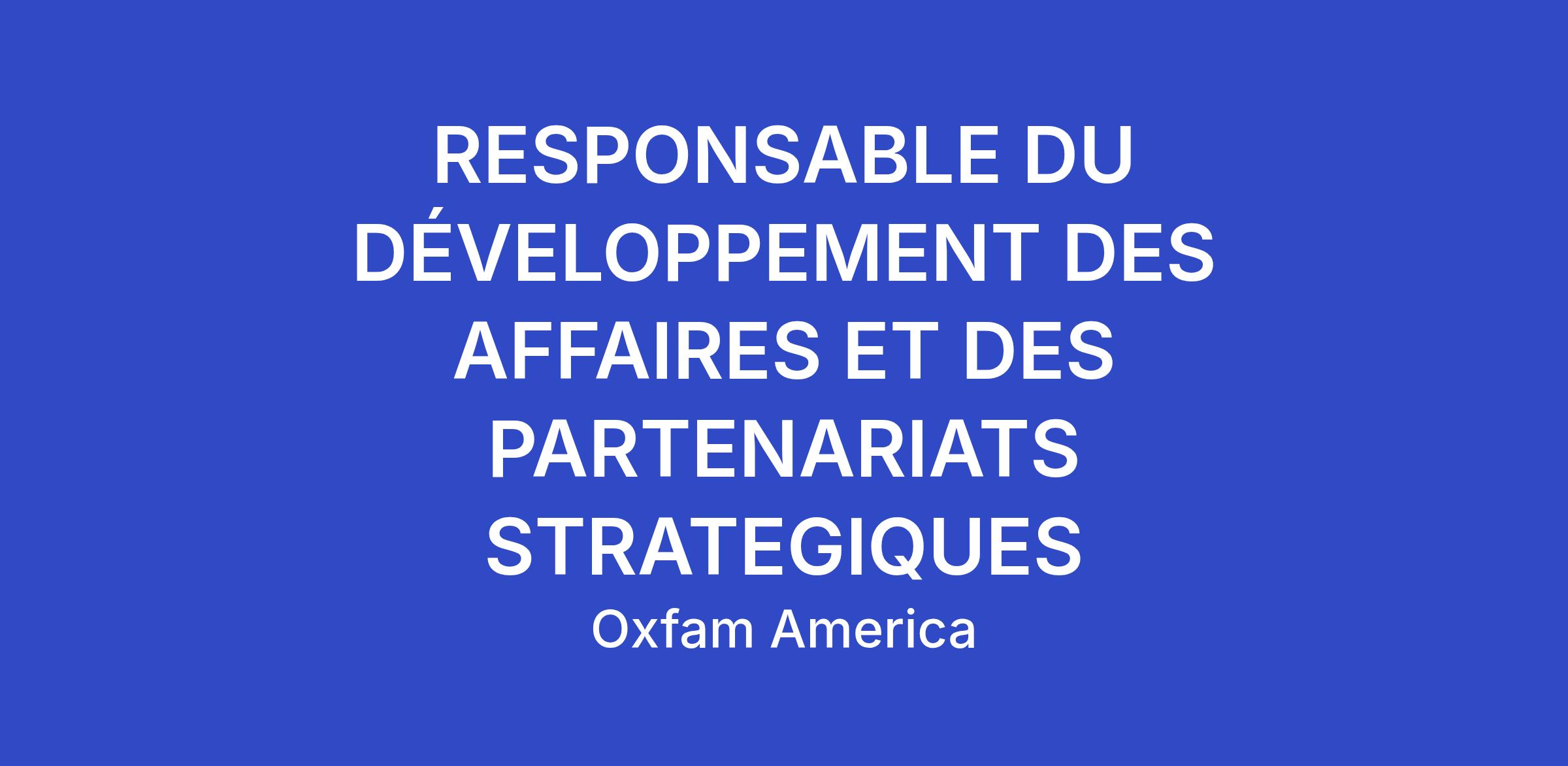 RESPONSABLE DU DÉVELOPPEMENT DES AFFAIRES ET DES PARTENARIATS STRATEGIQUES