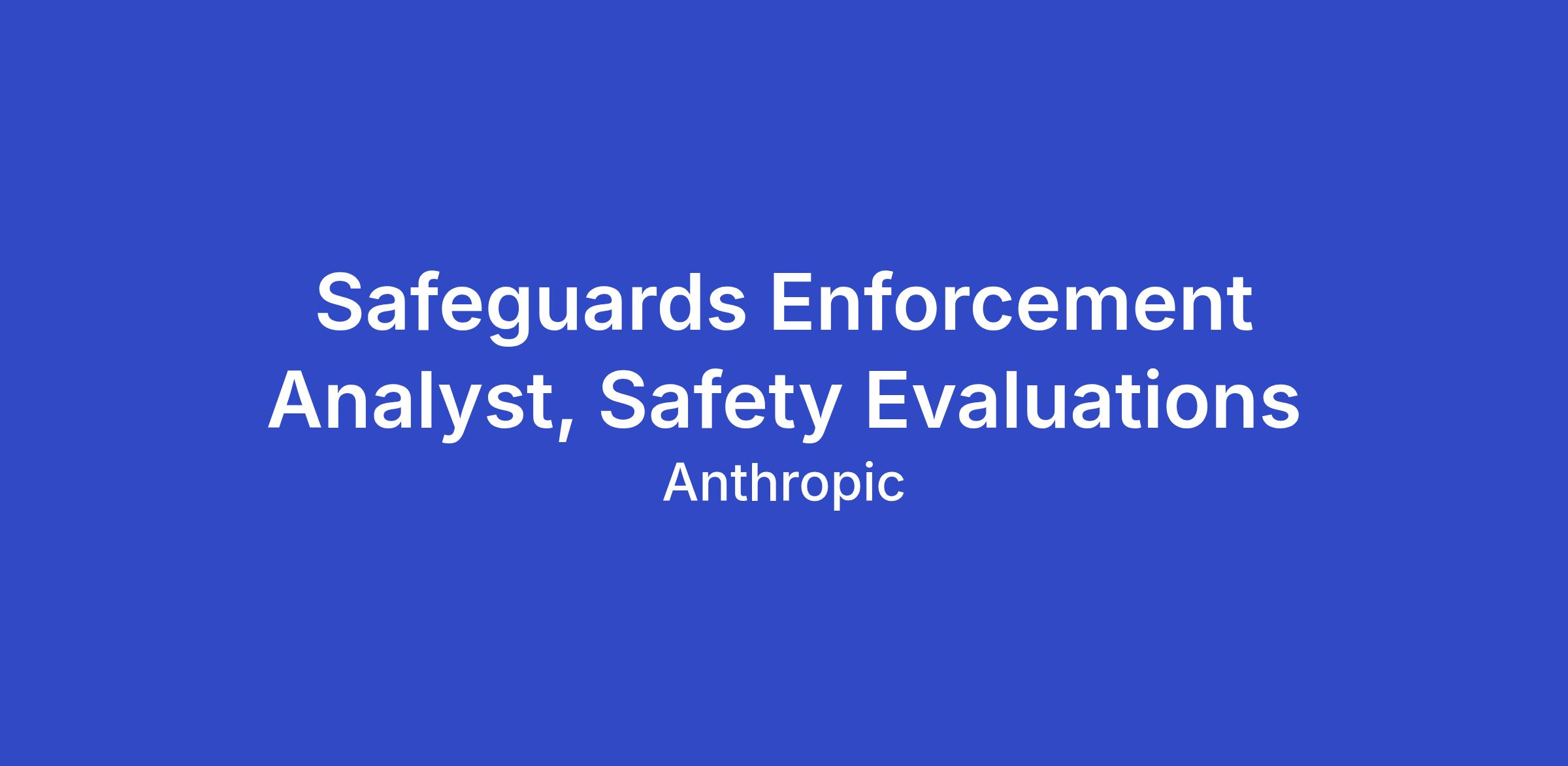 Anthropic's Safeguards team is responsible for enforcing our policies, protecting users, and ensuring our platform is not misused. As a Safeguards Enforcement Analyst focused on Safety Evaluations, you'll play a central role in ensuring our models meet safety and policy standards before and after launch. You'll run and monitor evaluations, drive mitigations when issues surface, coordinate the creation of new evals, and help build the processes and documentation that allow the team to scale this work over time.