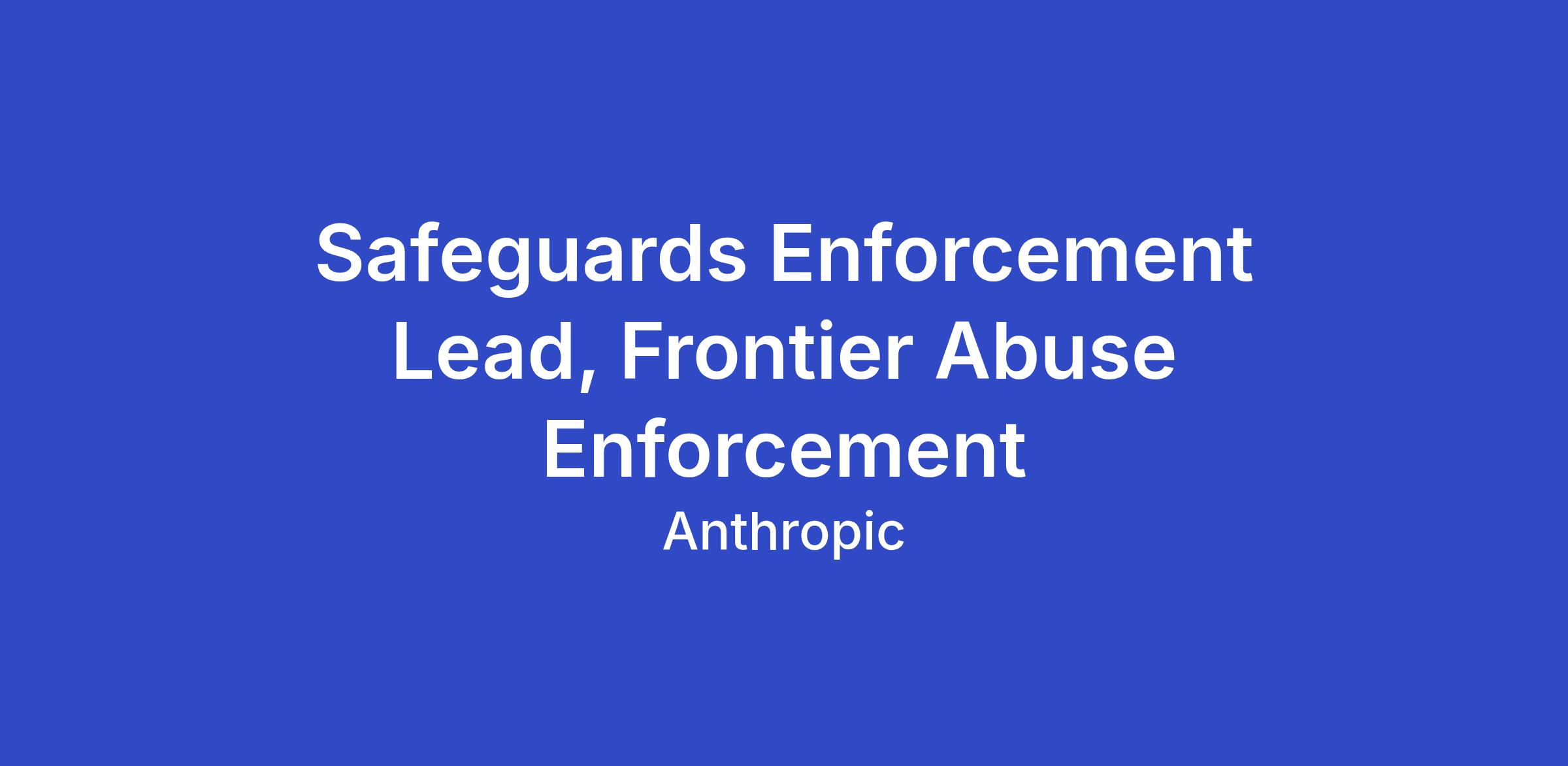 Anthropic is an AI safety and research company working to build reliable, interpretable, and steerable AI systems. We want AI to be safe and beneficial for our customers and society as a whole. As a Safeguards Enforcement Lead focusing on frontier model abuse, you will serve as the dedicated program owner for one of the most consequential and fast-moving abuse vectors on our platform: actors who misuse Anthropic's models to train competing AI systems in violation of our usage policies and terms of service. Safety is core to our mission, and you'll own how we identify, investigate, and act against this category of harm — from developing the detection playbook to seeing enforcement cases through to resolution.