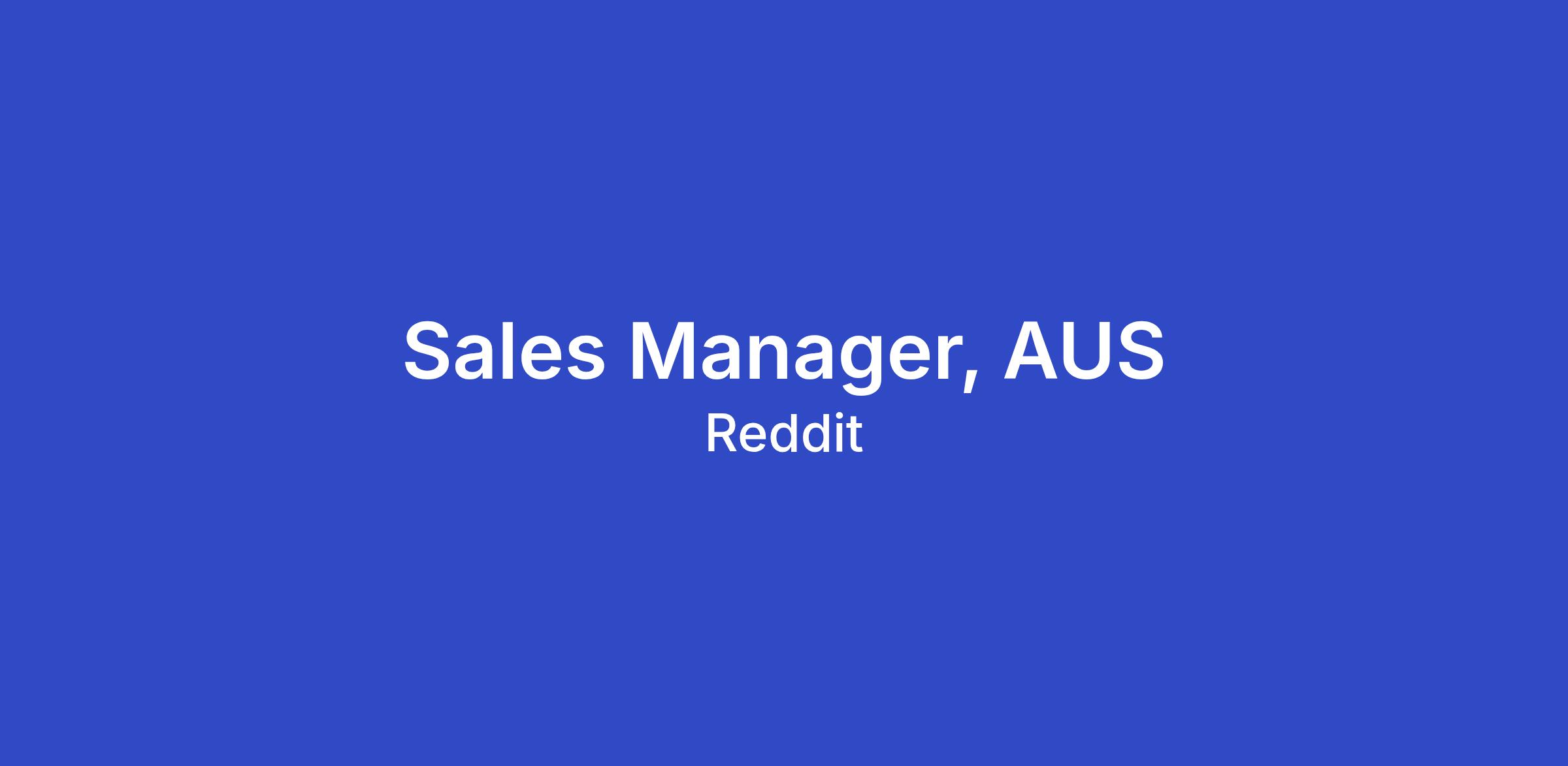 We are looking for a Manager of Enterprise Sales for Australia. This person will actively develop and lead a team of Client Partners and Client Account Managers to help agencies and advertisers achieve their marketing objectives on the fast-growing Reddit platform.