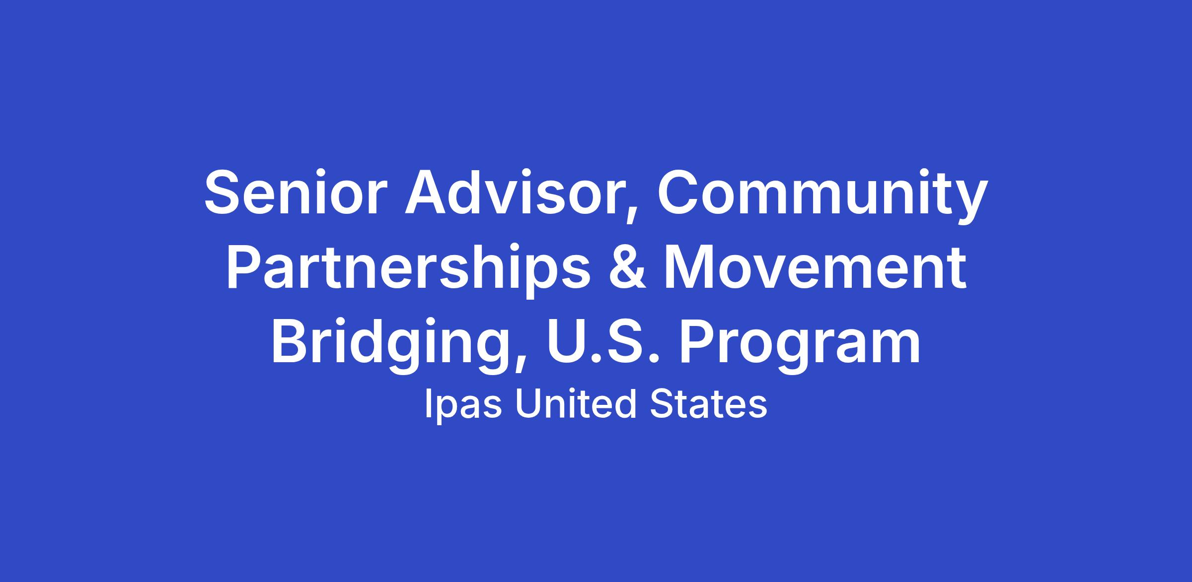 The Senior Advisor, Community Partnerships and Movement Bridging serves as a leader for the development, implementation, and expansion of Ipas U.S.’s community-based programming in priority regions, with a strong focus on partnerships, movement bridging, and community-driven strategies. The Senior Advisor will center and uplift state and local partners in the broader strategic planning and implementation efforts of the U.S. Program. The Senior Advisor also plays a central role in supporting the sustainability of community-rooted care ecosystems, working collaboratively across the US team and the broader Ipas global network.