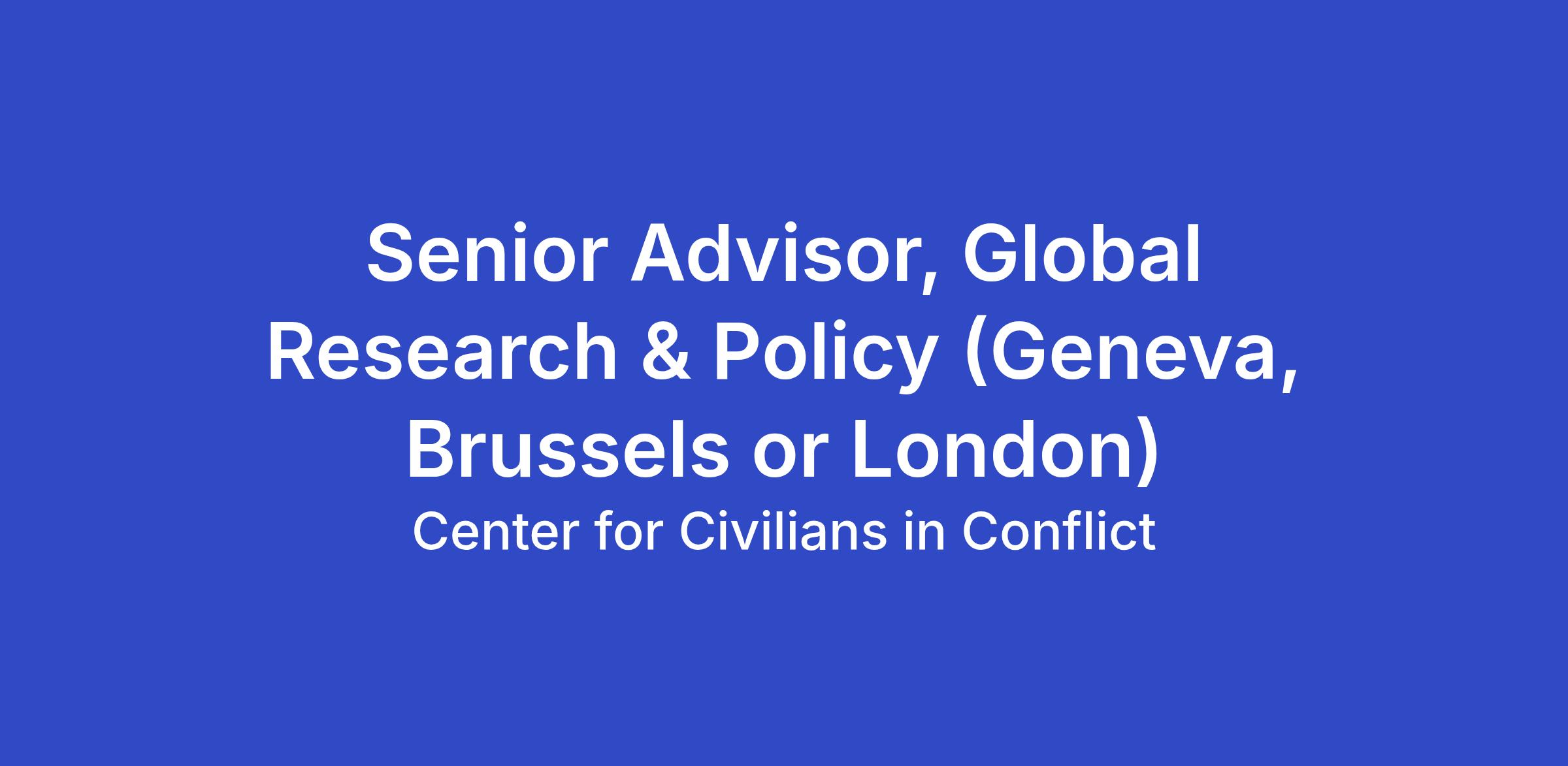 Oversee research at CIVIC, including development of policy/guidance, implementation of research processes, development of research partnerships, and quality control of research deliverables. Member of CIVIC’s Protection of Civilians (POC) Division. Provide strategic policy analysis that informs CIVIC’s humanitarian diplomacy engagement with armed actors, governments, and multilateral institutions, ensuring that research findings translate into operationally relevant policy positions and practical recommendations.