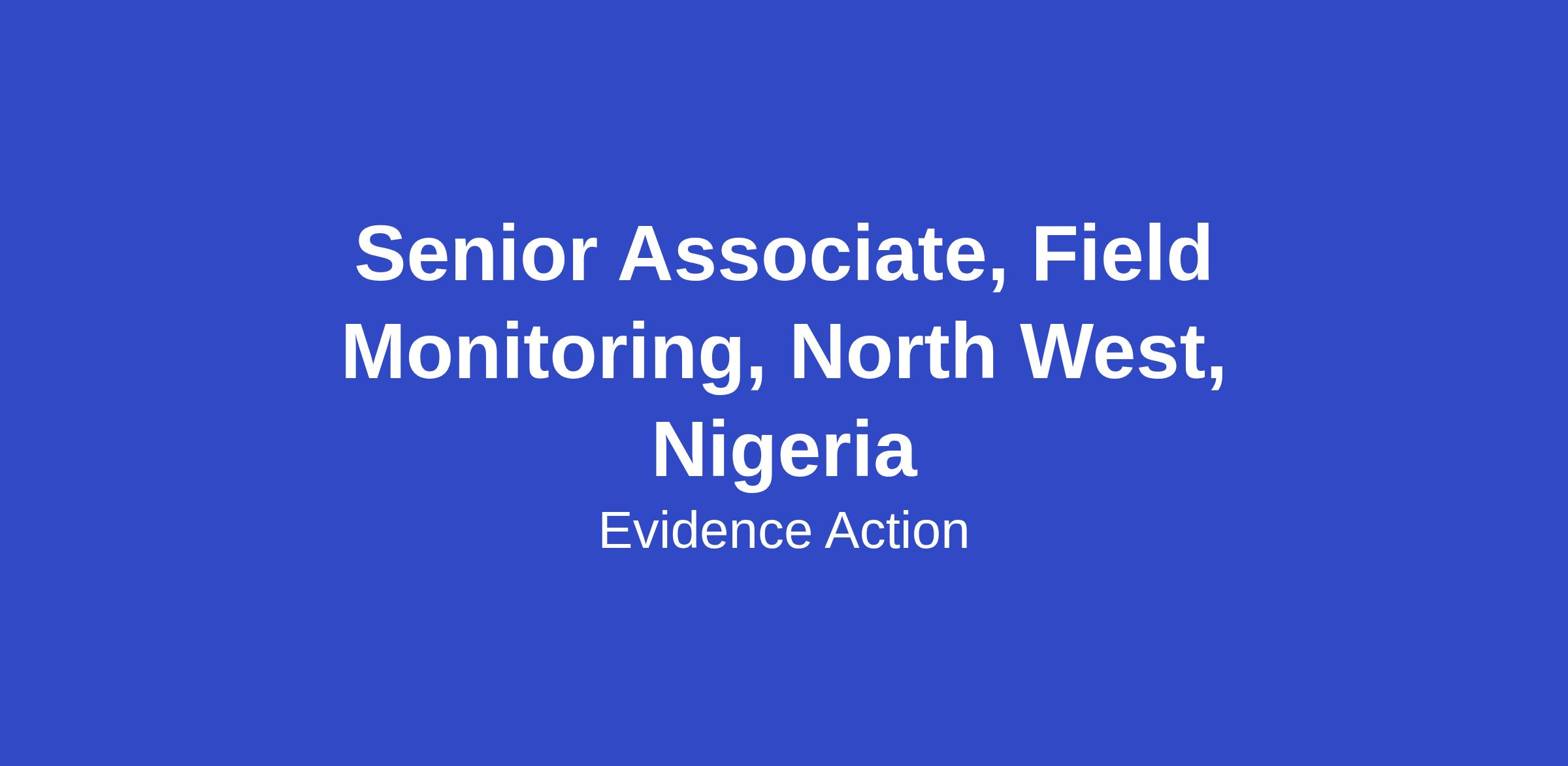 Senior Associate, Field Monitoring, North West, Nigeria
