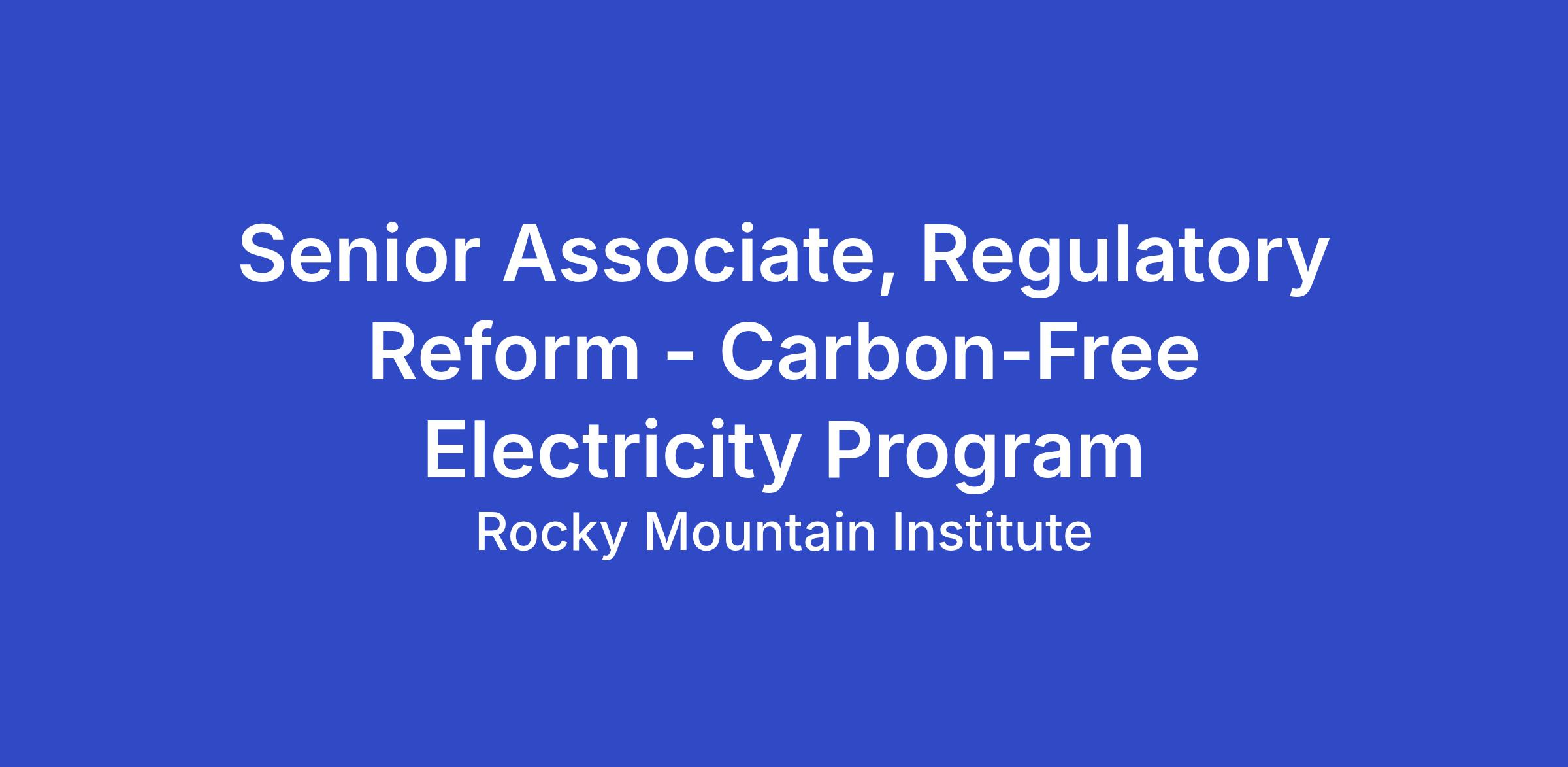 CFE seeks a Senior Associate to contribute to RMI’s work on a wide range of potential utility regulatory topics, including ratemaking, utility finance & accounting, cost recovery approaches, alternative regulation (including performance-based regulation), customer affordability programs, utility business models, distributed energy resources, and distribution planning. .