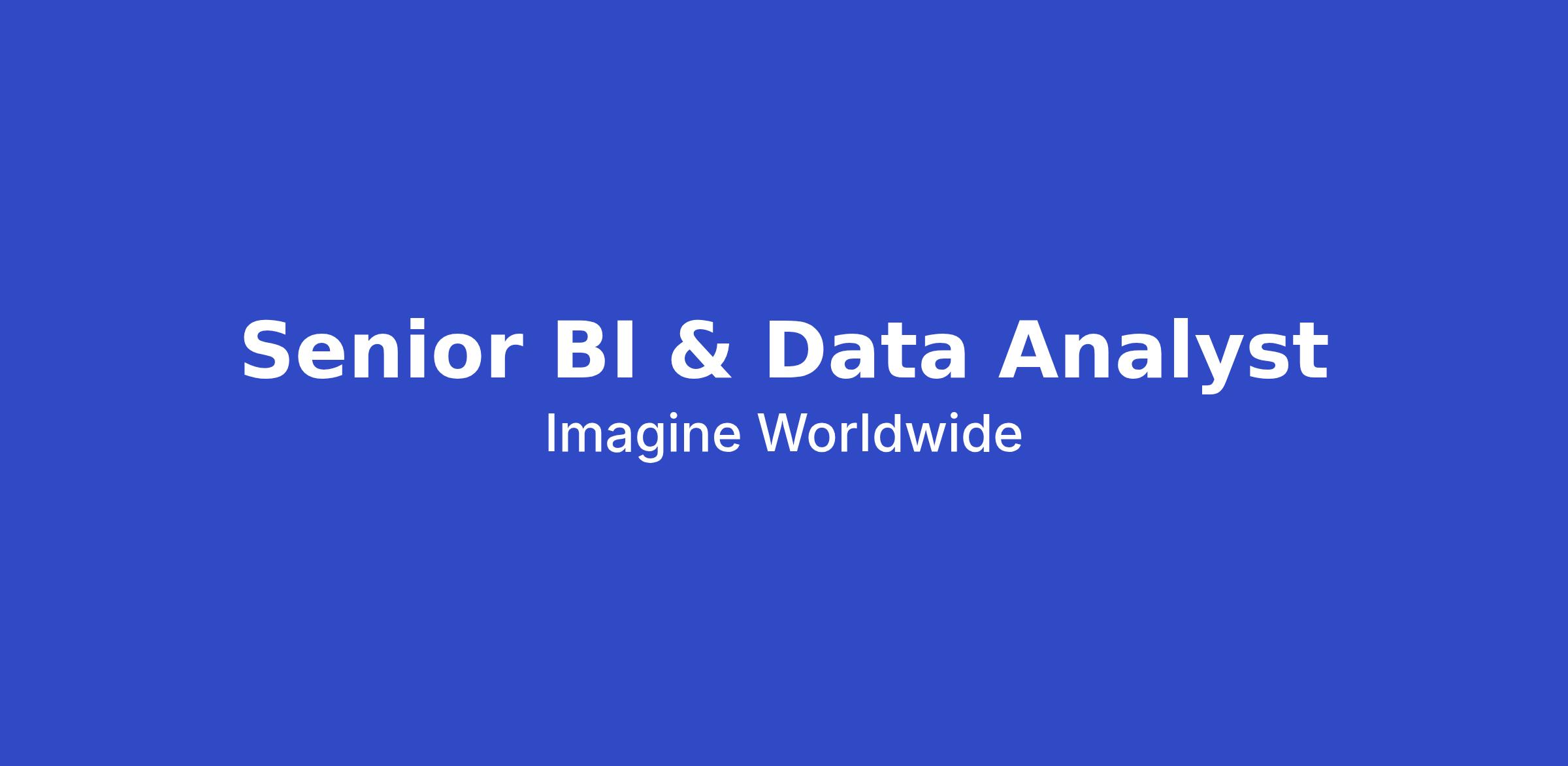 The Senior BI & Data Analyst is a core execution role within Imagine's Analytics Team, sitting at the intersection of two complementary functions: building the data infrastructure that makes organisational performance visible, and doing the analytical work that makes it meaningful. This is a hybrid role that requires genuine craft in both directions — strong candidates will be equally comfortable designing a dashboard for a country team as they are digging into an operational dataset to answer a specific business question.