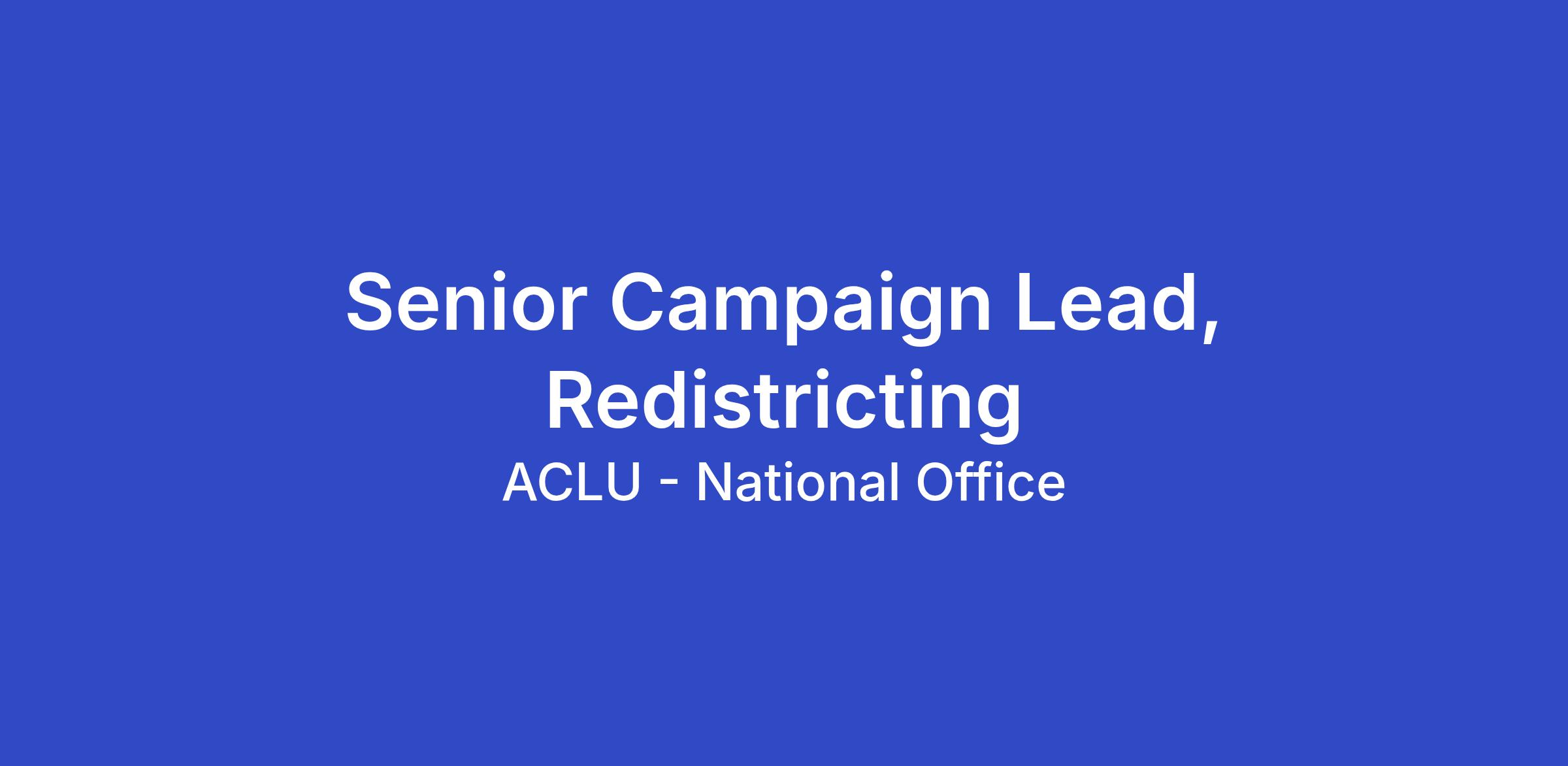 The ACLU seeks applicants for the full-time position of Senior Campaign Lead, Redistricting in the National Political Advocacy Department of the ACLU’s National office in Washington, D.C. This is a hybrid role that has in-office requirements of two (2) days per week or eight (8) days per month.