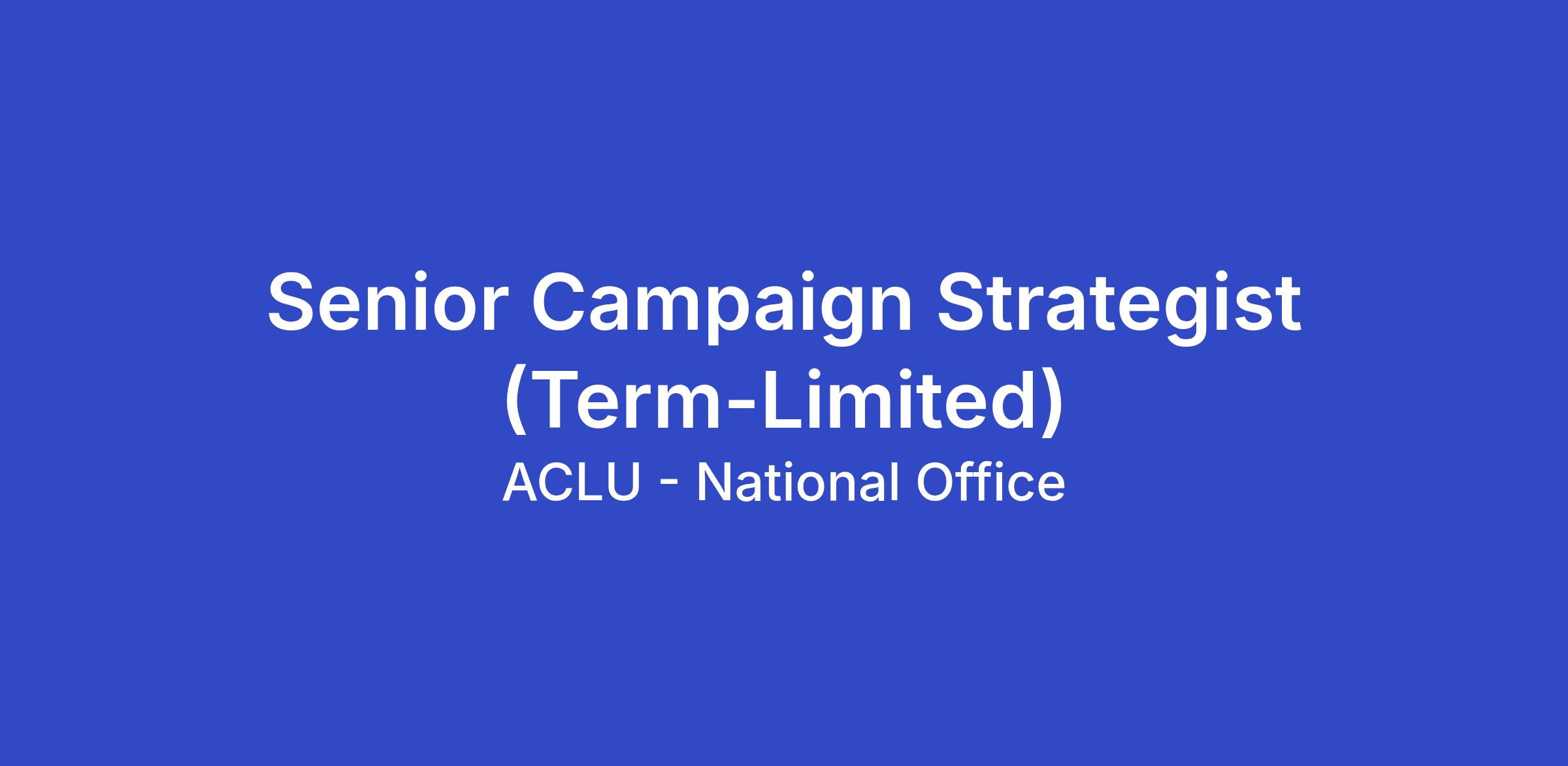 The ACLU seeks applicants for the full-time position of Senior Campaign Strategist in the National Political Advocacy Department of the ACLU’s National office in Washington, DC or New York. This is a hybrid role that has in-office requirements of two (2) days per week or eight (8) days per month. This is a three-year term-limited position.
