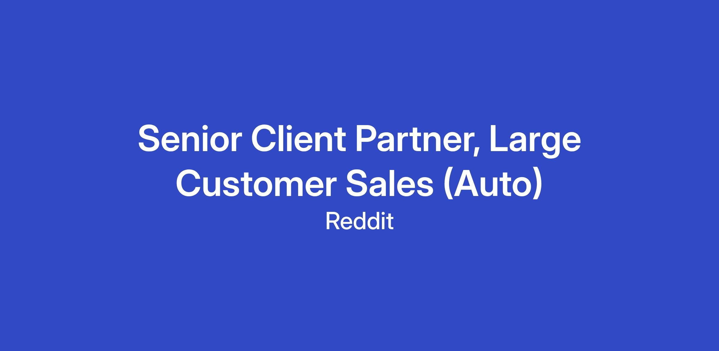 We're looking for an experienced seller to join the Auto vertical of our Large Customer Sales team. As a Senior Client Partner, you will be responsible for forming relationships with key brands and agencies while ensuring they meet their business objectives using Reddit's advertising suite.