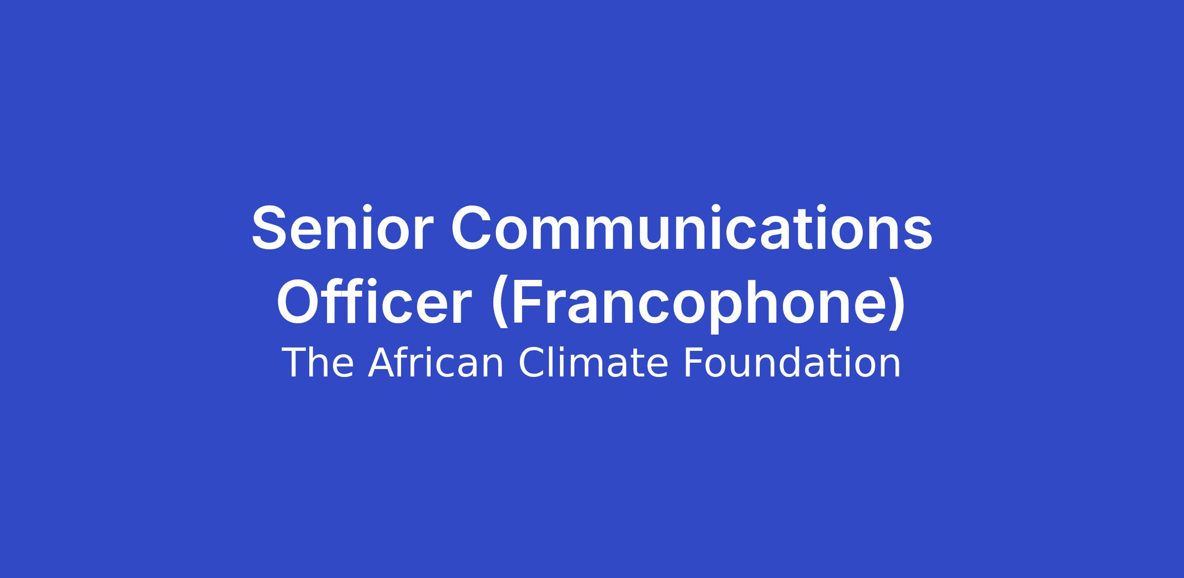 The African Climate Foundation (ACF) is a strategic grant-maker and platform for catalytic climate action across the African continent. Our work supports African-led responses to climate change that advance inclusive development and climate resilience. We are seeking a Senior Communications Officer to help enhance our visibility and support the strategic goals of our Communications department. For this role, strong communication skills in both French and English are essential, along with a solid understanding of and strong network within Francophone media. A commitment to amplifying the impact of our partners and ACF’s work through the creation of compelling content is key.