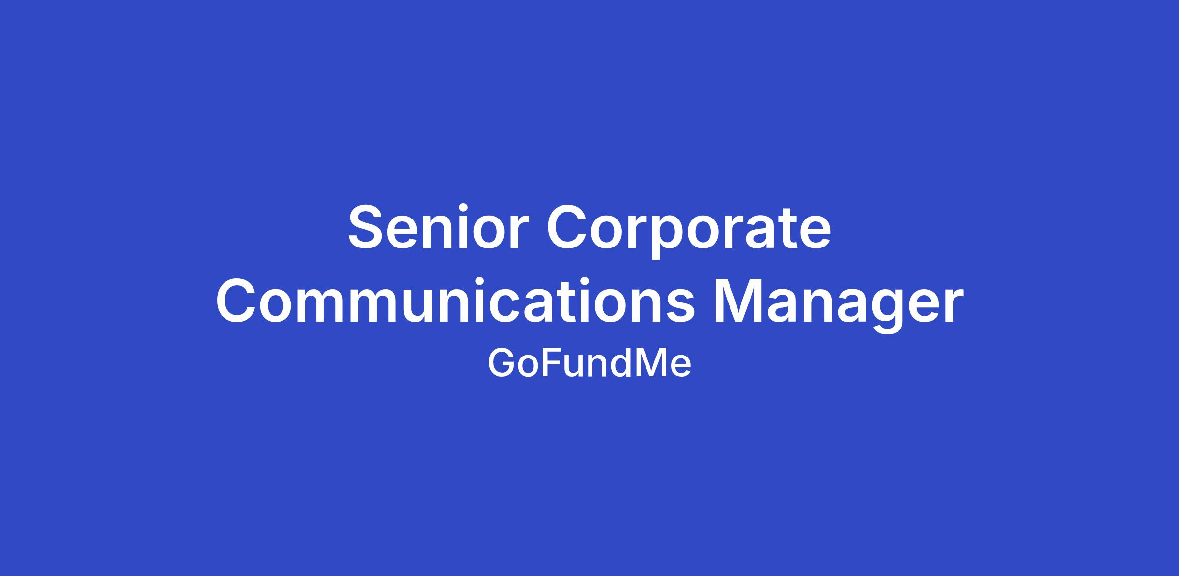 Join Us! The GoFundMe Pro team is searching for our next Senior Corporate Communications Manager to lead executive communications and strategic storytelling in support of our nonprofit business, including our B2B software, GoFundMe Pro. This individual will play a key role in elevating the company’s voice across the nonprofit and social impact sectors