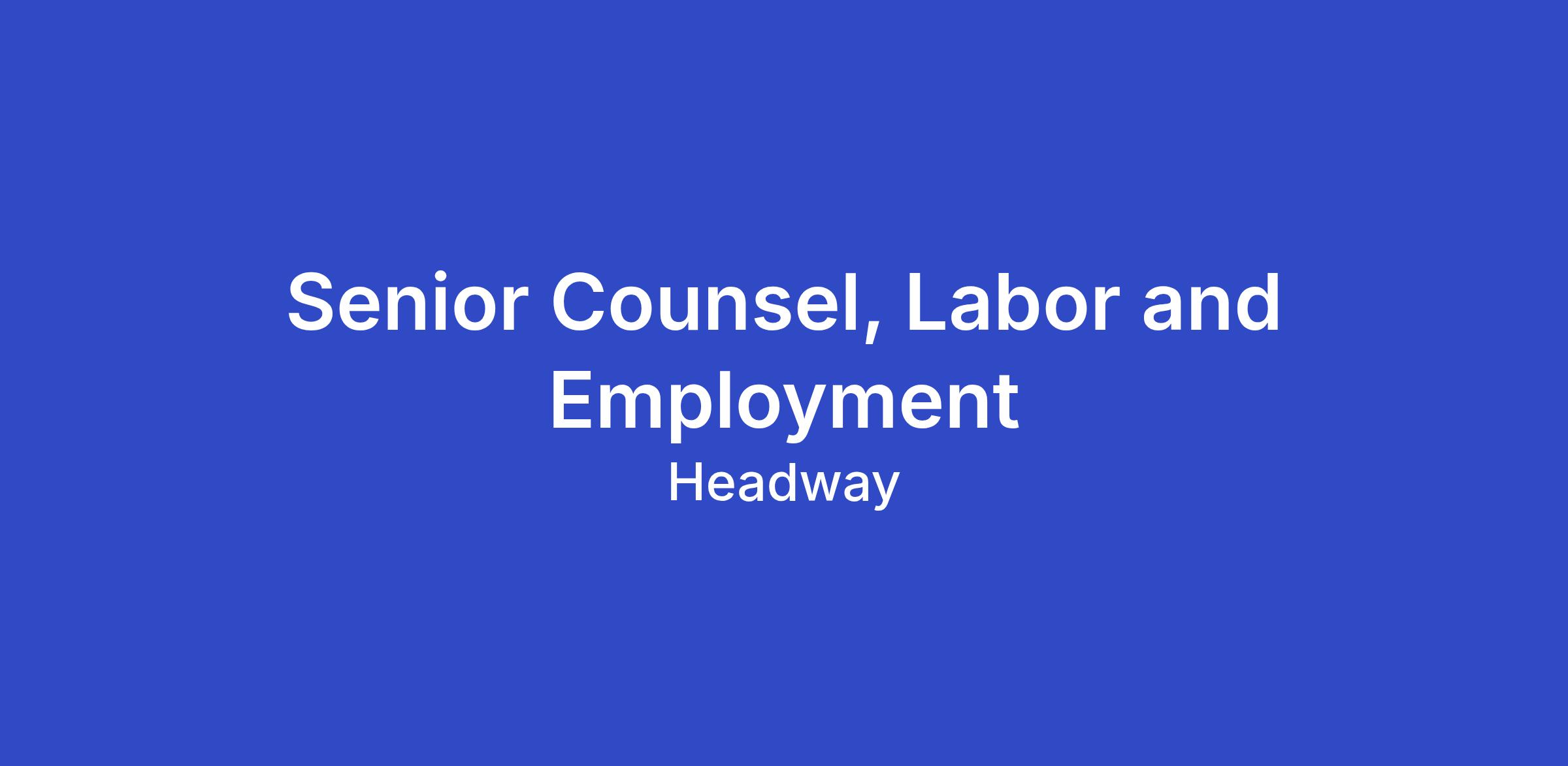 As Senior Counsel, Labor & Employment, you will be the lead attorney partnering with Headway’s People function to support a rapidly growing and national workforce. You will own day-to-day advice and counsel on employment matters while also working closely with the People team to enhance systems and processes to allow Headway to scale with speed and fidelity. This is a unique opportunity to join a mission-driven healthcare technology company, work alongside passionate and talented colleagues, and grow in an environment where Legal is viewed as a strategic partner.