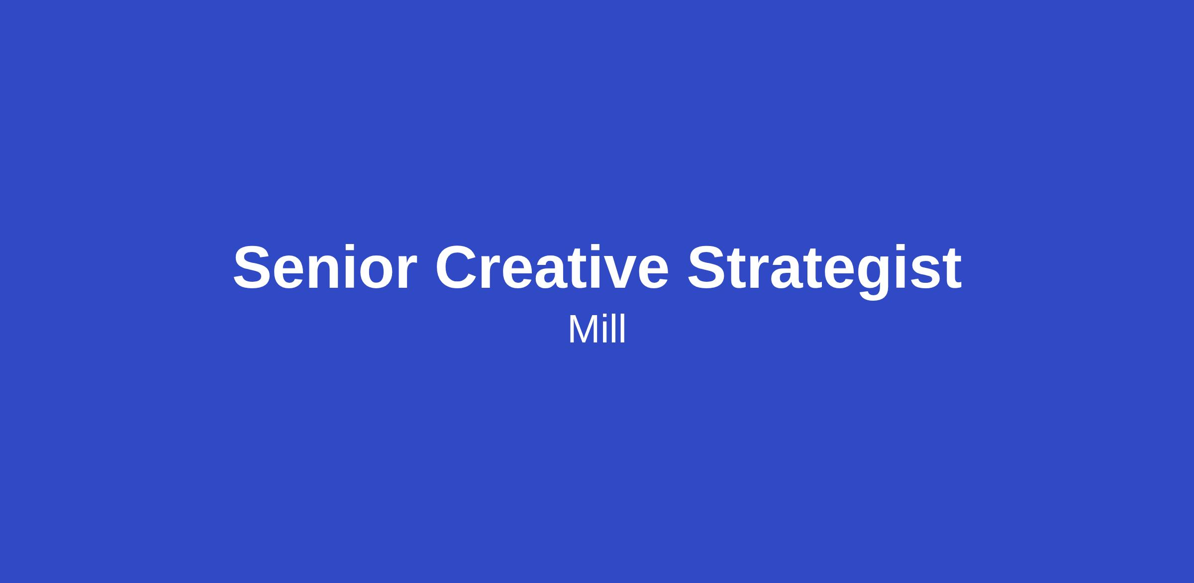 Mill is looking for a Senior Creative Strategist to help shape insight-driven creative that performs across demand creation and performance marketing. You’ll turn customer research, cultural signals, market learnings, and performance data into standout campaigns, landing pages and ad creative that build the Mill brand and drive measurable growth.