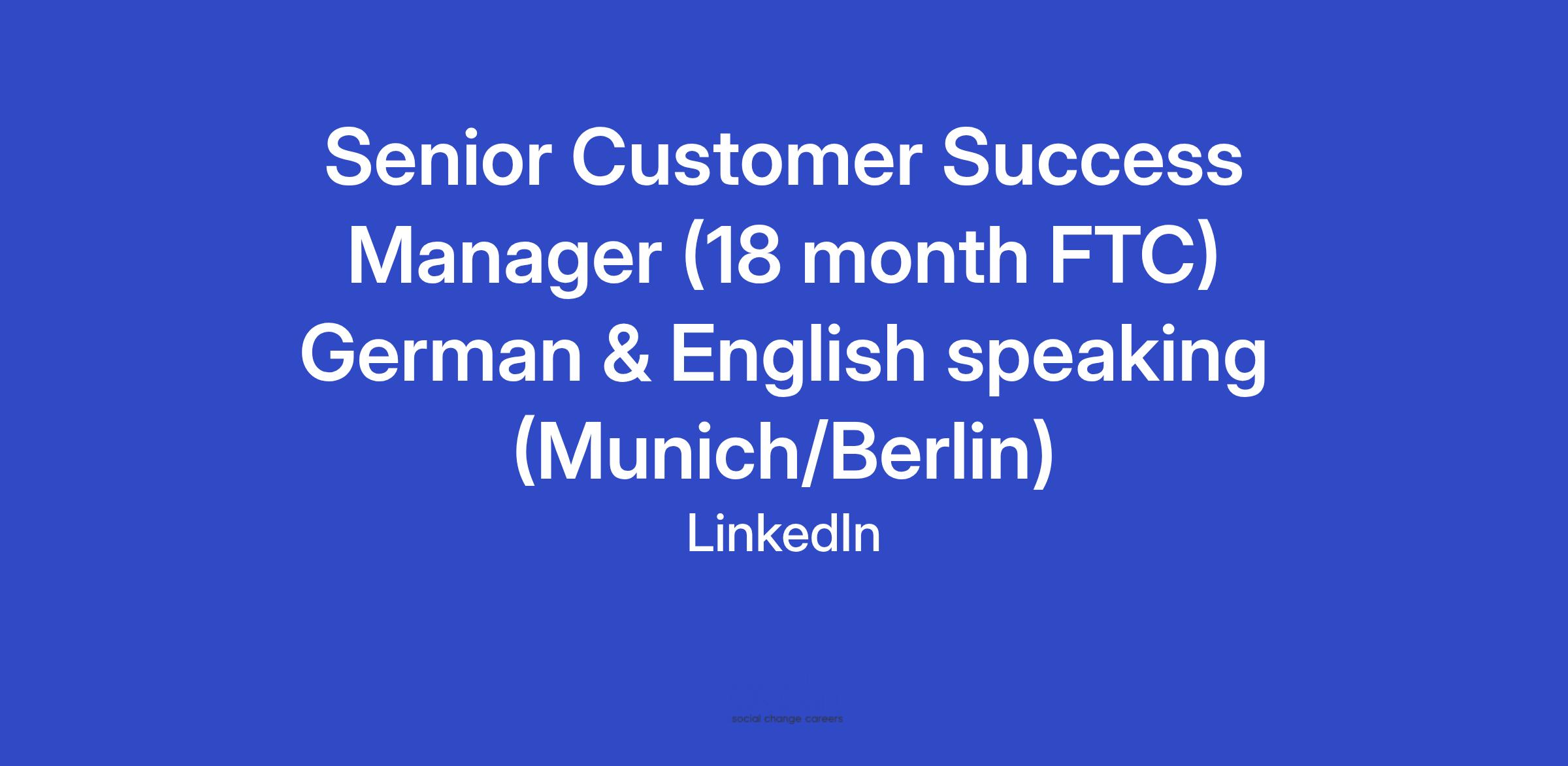Senior Customer Success Manager (18 month FTC) German & English speaking (Munich/Berlin)