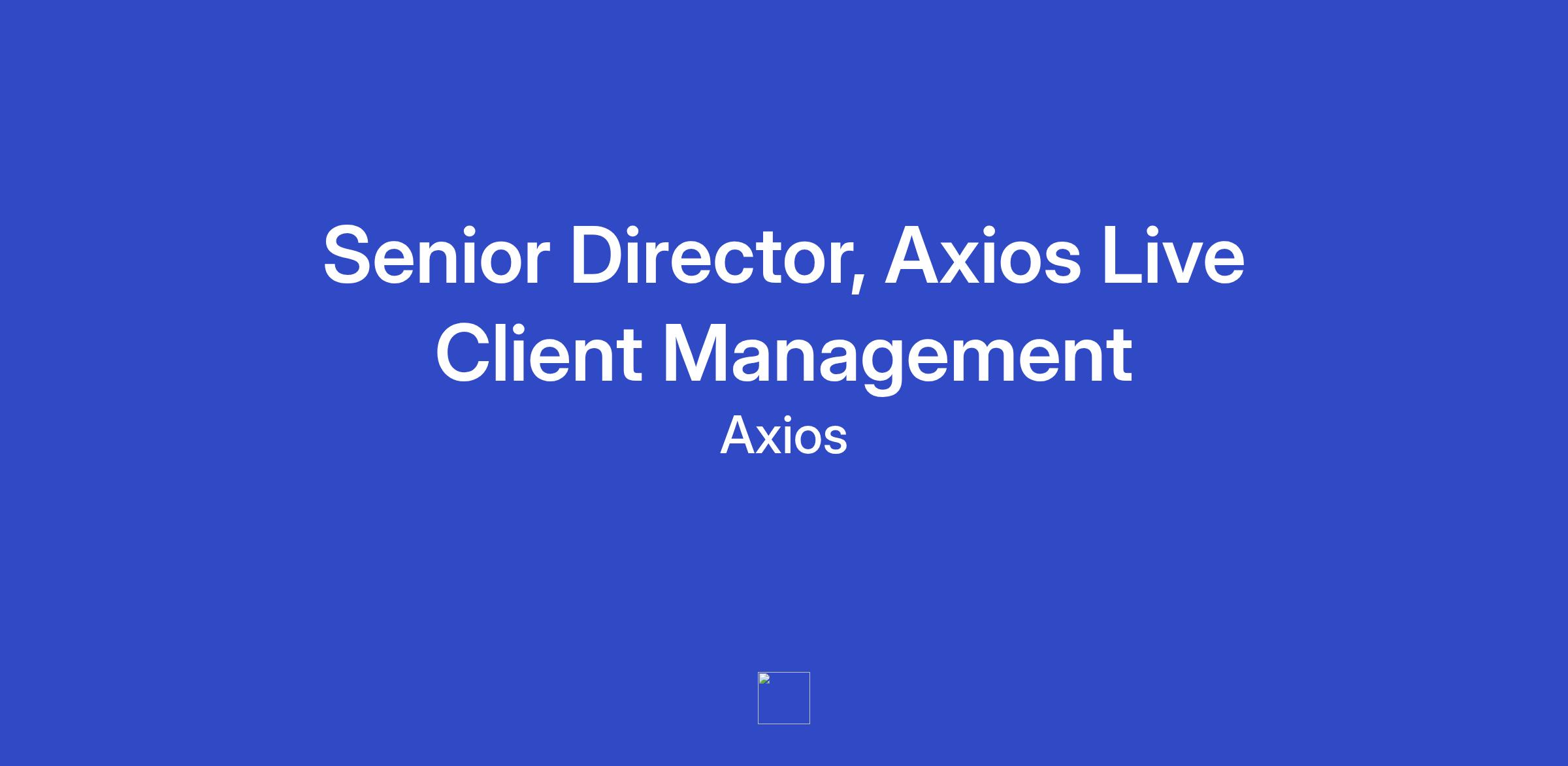 The big picture: Axios is committed to delivering trustworthy, award-winning news in an audience-first format. As part of our growth strategy, the Axios Events Team - a creative, strategic arm of the revenue organization - is hiring a Senior Director of Client Management, Axios Live.