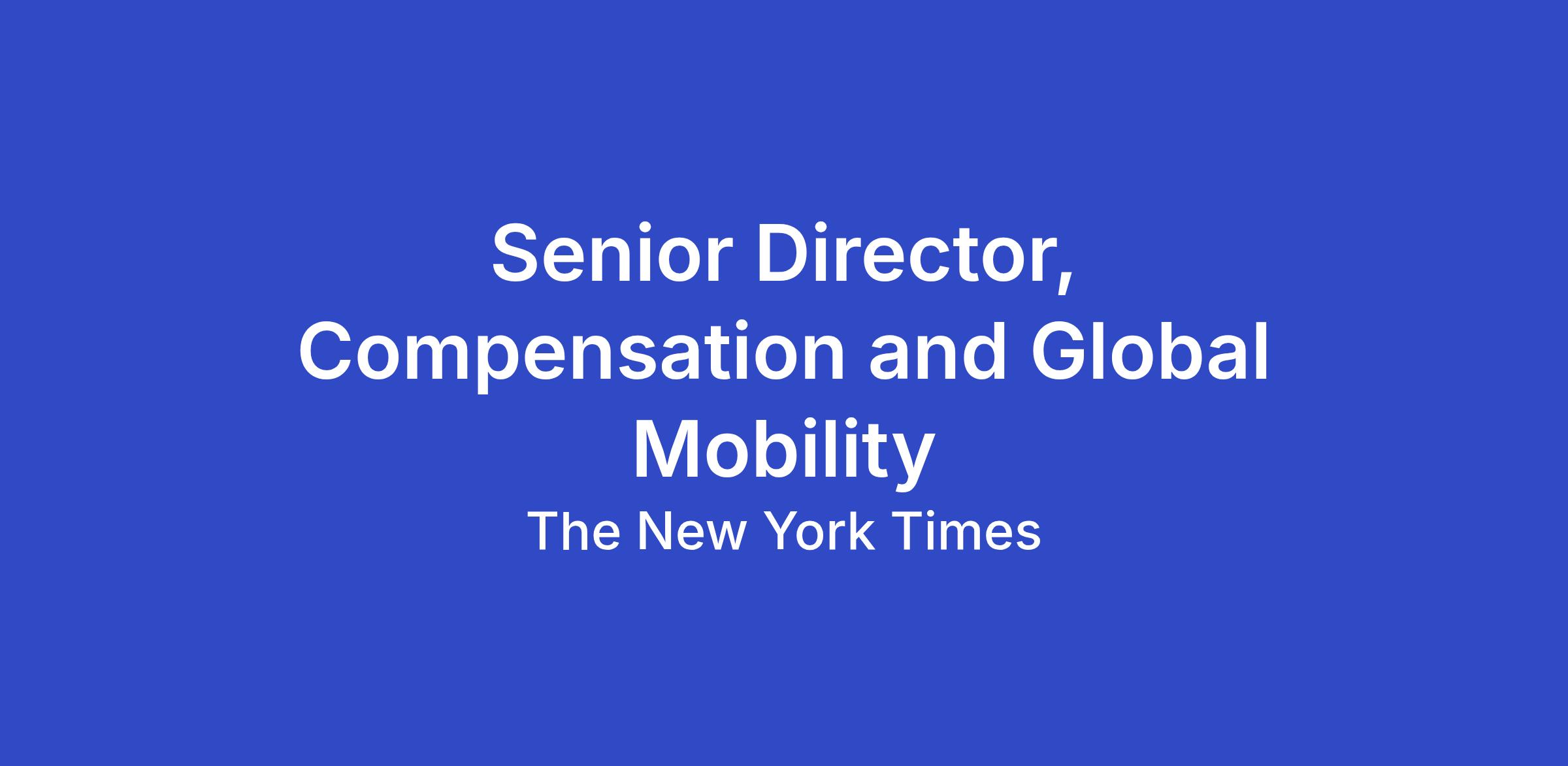 The Senior Director, Compensation & Global Mobility will report to the VP, Compensation and serve as a strategic partner to the Newsroom and the Masthead of The Times, supporting all global editorial and journalistic functions. This role is responsible for driving the strategic design, operational excellence, and holistic governance of all compensation programs for the Newsroom, Opinion, and Wirecutter at The New York Times. In addition to a newsroom-specific compensation strategy, you will lead the Global Mobility function, managing a team of four to support all international transfers and expatriates.