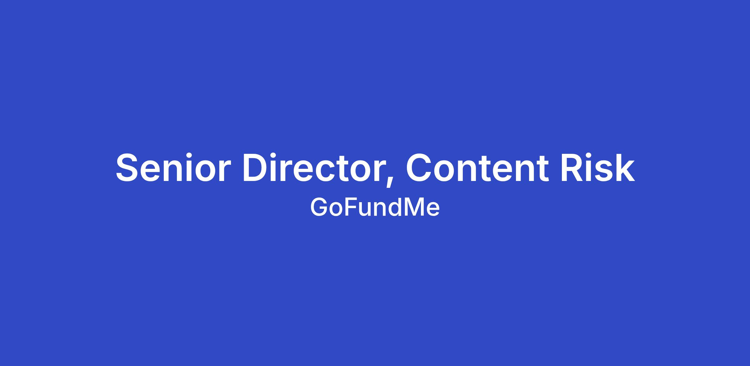Join us! The GoFundMe team is searching for our next Senior Director, Content Risk to help lead our company's approach to operationalising the enforcement of our community conduct and behavior on the GoFundMe platform. This role will help define the content moderation policies and operations that underpin a safe, inclusive, and prosocial environment, furthering our mission to help people help each other through compassion and generosity. You will lead how we balance expression with safety, especially in a world of fast-growing video, user-generated content, nonhuman agents, and social virality. This is not just about managing content, it's about shaping the norms and systems that define what kind of community we believe will generate the largest prosocial marketplace in the world.