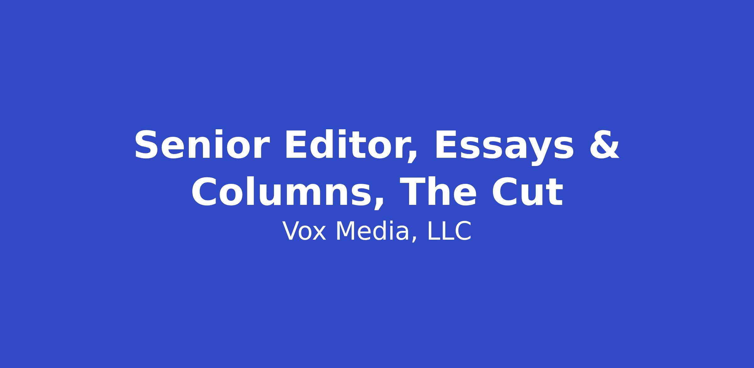 The Cut is seeking a Senior Editor, Essays & Columns to help shape and grow our signature first-person and opinion-driven storytelling. This editor will work closely with writers to develop distinct voices, sharpen arguments, and publish essays and columns that feel urgent, intimate, and culturally resonant.