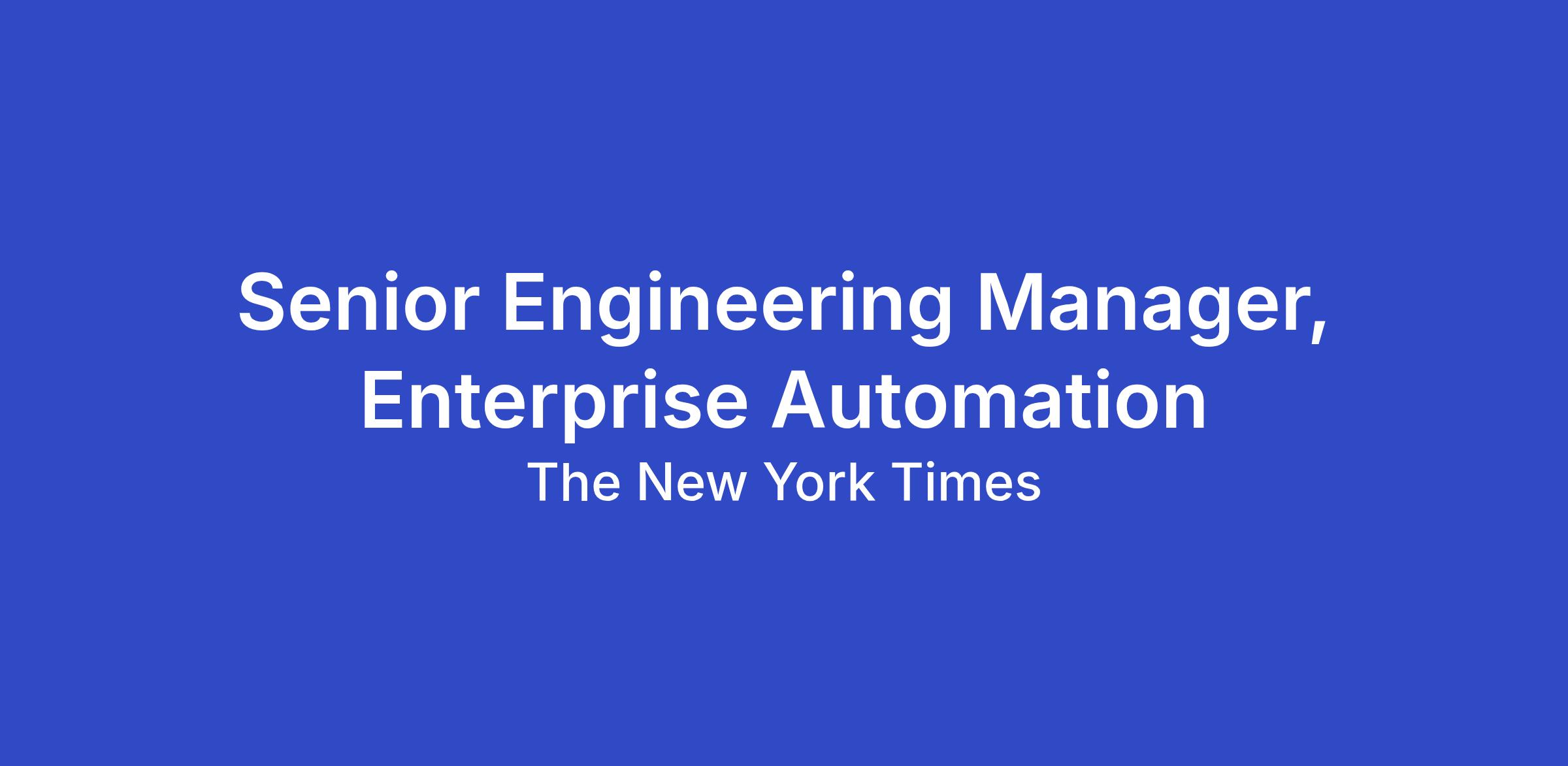 The New York Times is looking for a Senior Engineering Manager, Enterprise Automation to lead a multidisciplinary group of engineers and analysts focused on process excellence, automation, and measurable operational improvement across the organization.