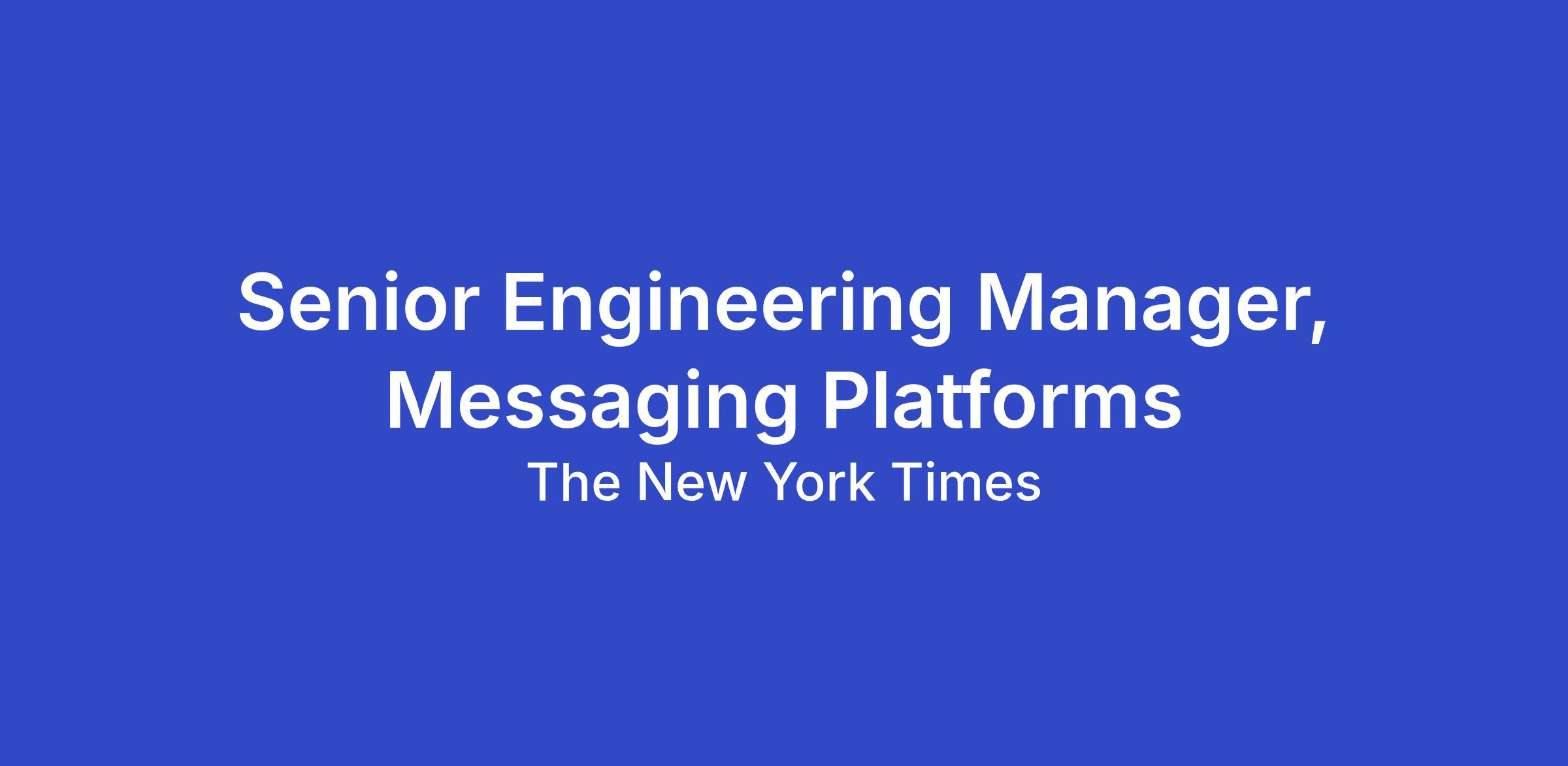 The New York Times is looking for a Senior Engineering Manager to lead our Integrated Messaging team within the Messaging Platforms group. This is a full-stack engineering team responsible for the end-to-end experience of our direct-to-consumer messaging. We build both the high-throughput delivery engines that power native push notifications for millions of readers and the internal applications that allow our newsroom and marketing partners to orchestrate these communications.