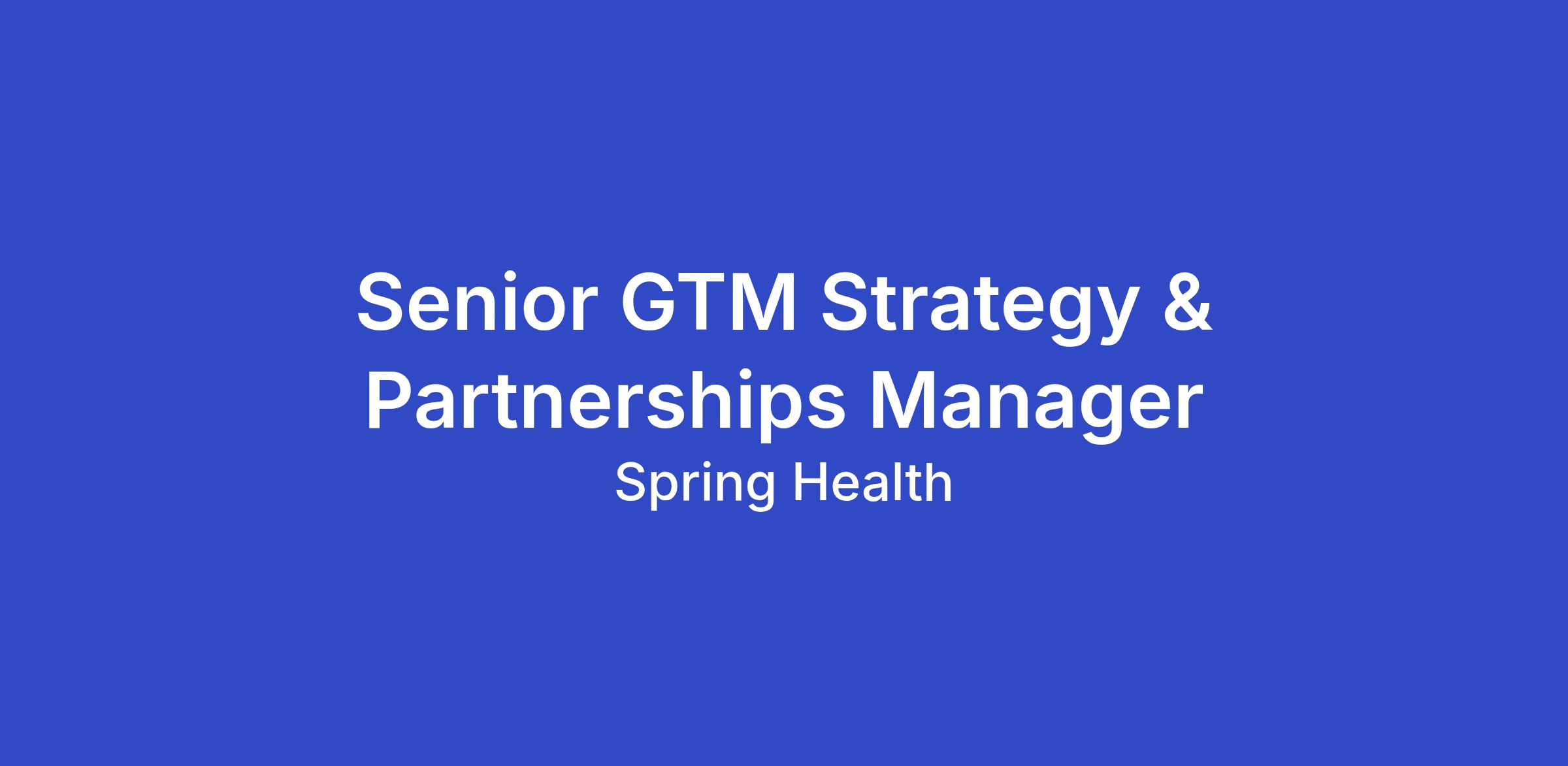 Reporting to the Associate Director, GTM Strategy & Partnerships, the Senior GTM Strategy & Partnerships Manager will operationalize and scale Spring Health’s go-to-market partnerships by translating strategy into execution. This remote (U.S.-based) role is part of the GTM Strategy & Partnerships team and plays a critical role in driving successful partnership launches, cross-functional readiness, and measurable revenue impact. This role requires approximately 10–20% travel for partner meetings, internal offsites, key go-live moments, and occasional on-site support for strategic partner trainings or launches.
