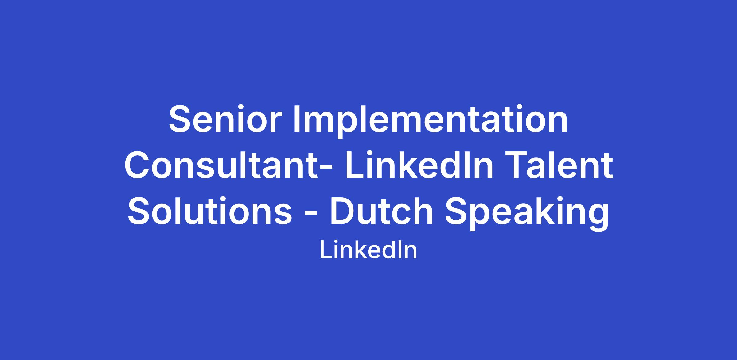 Senior Implementation Consultant- LinkedIn Talent Solutions - Dutch Speaking