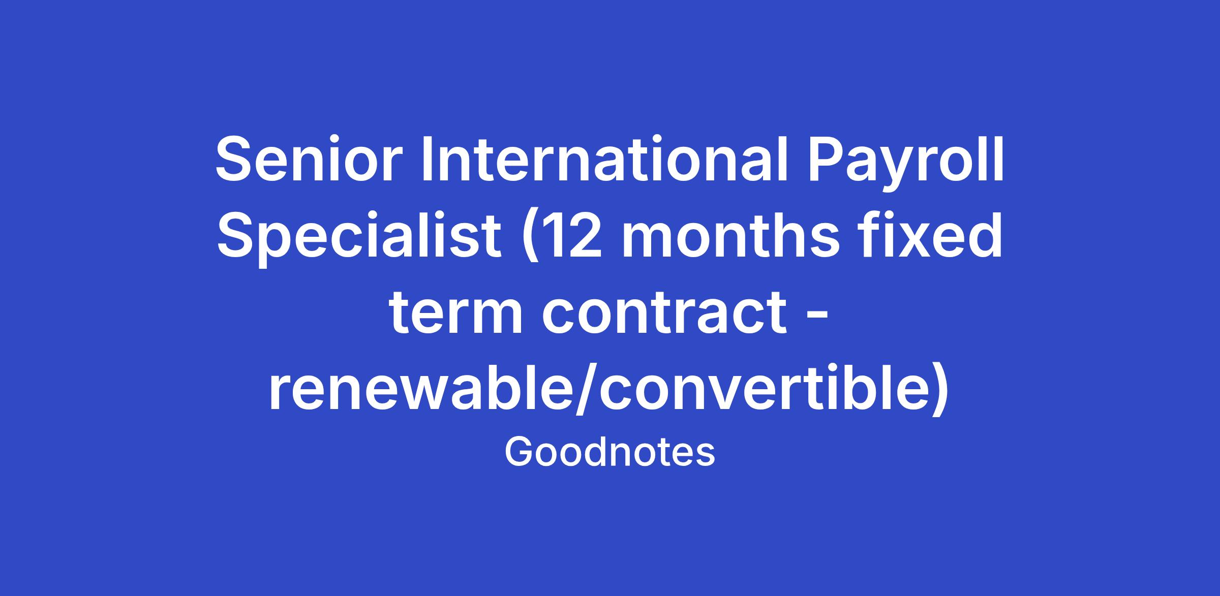 Senior International Payroll Specialist (12 months fixed term contract - renewable/convertible)