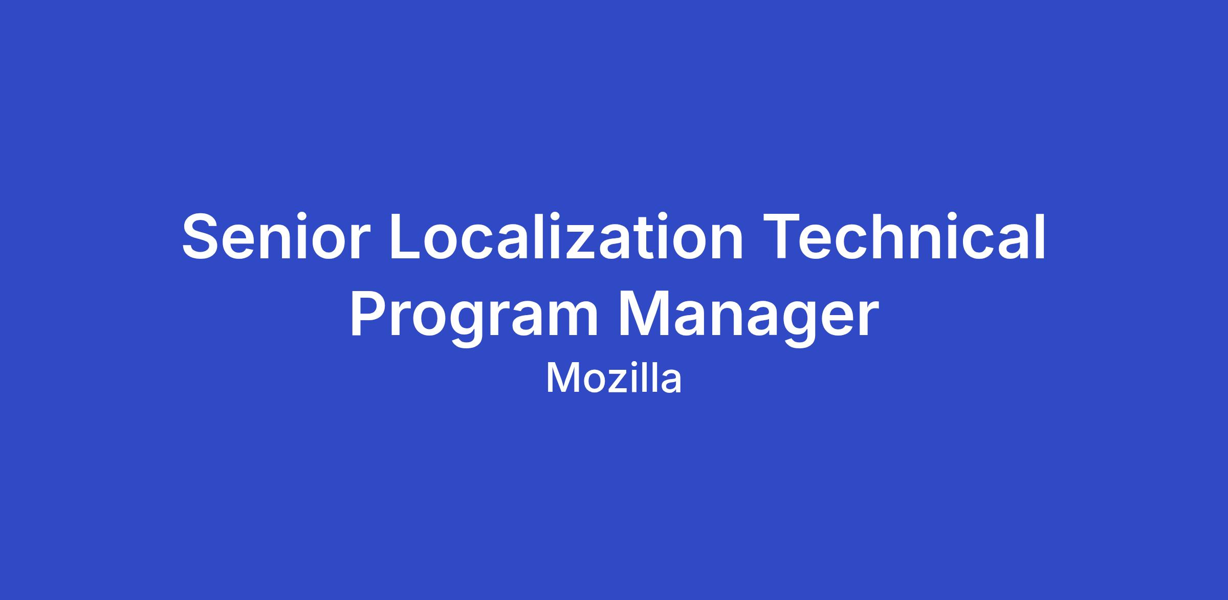The Localization Team manages the infrastructure that powers localization across all Mozilla products and services, and supports our global community of volunteer localizers. We are looking for a passionate and experienced Technical Program Manager to lead and scale localization efforts across a wide range of products.