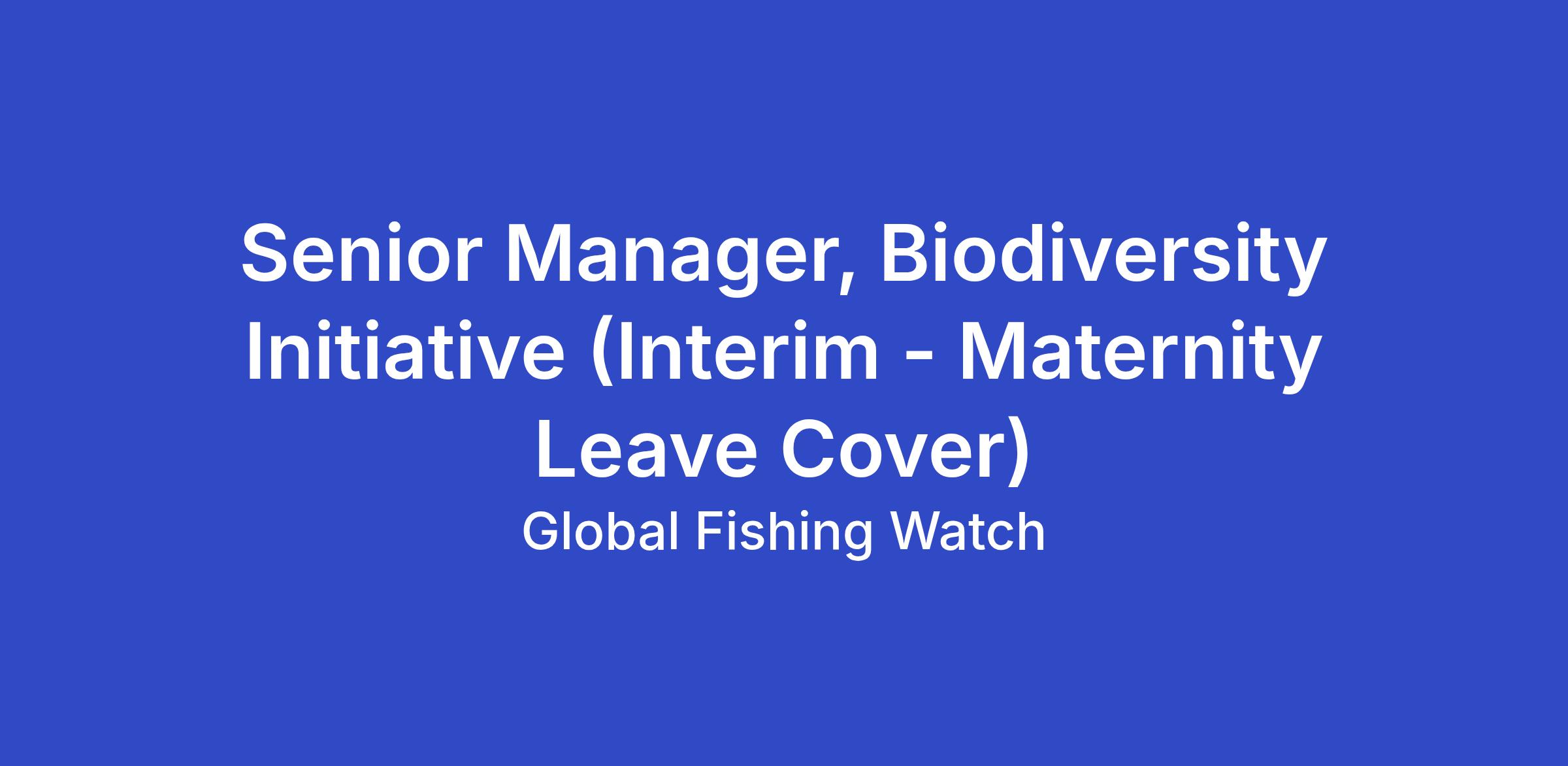 Global Fishing Watch is seeking a Senior Manager, Biodiversity Initiative (interim) for a fixed-term maternity leave cover running up until circa March 2028.