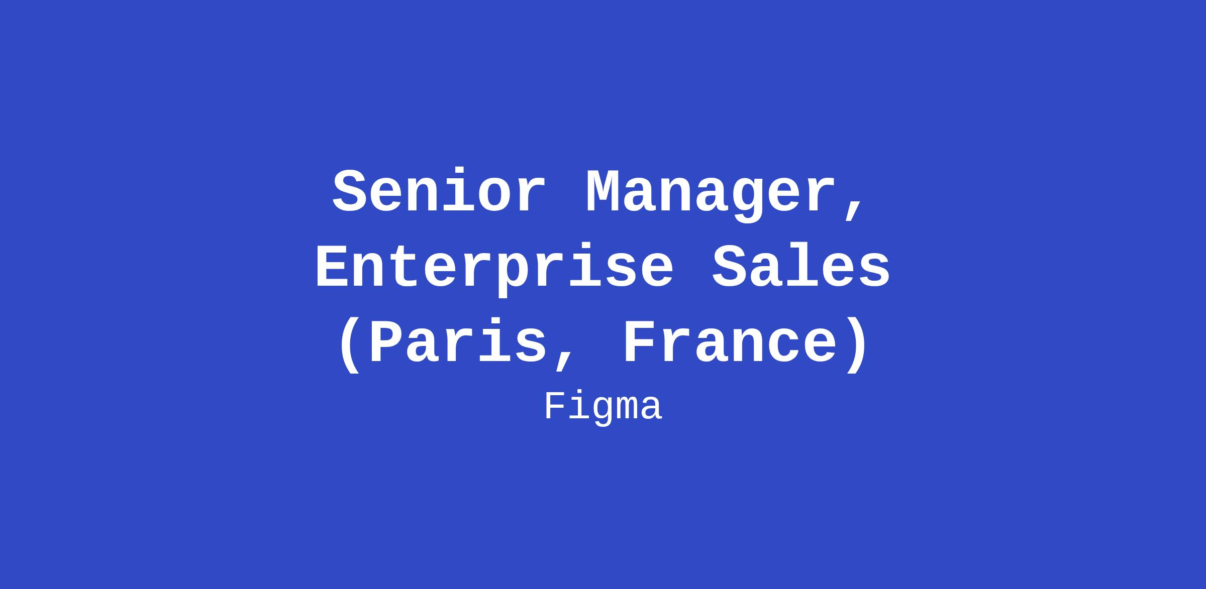 Figma is growing and moving fast. Our next team member will have an agile, dynamic approach, be comfortable embracing change, a true team-player, and love working with our growing footprint of Fortune 1000 customers. You won’t be alone! Figma has an incredible team and you’ll work closely with other groups including Support, Design, Engineering, Product Marketing, Customer Success, and Community. As Senior Manager, Enterprise Sales, you will lead a team of Account Executives responsible for continuing the growth of our Enterprise products across the Middle East region. You will report directly to our Senior Director, Sales in Paris.