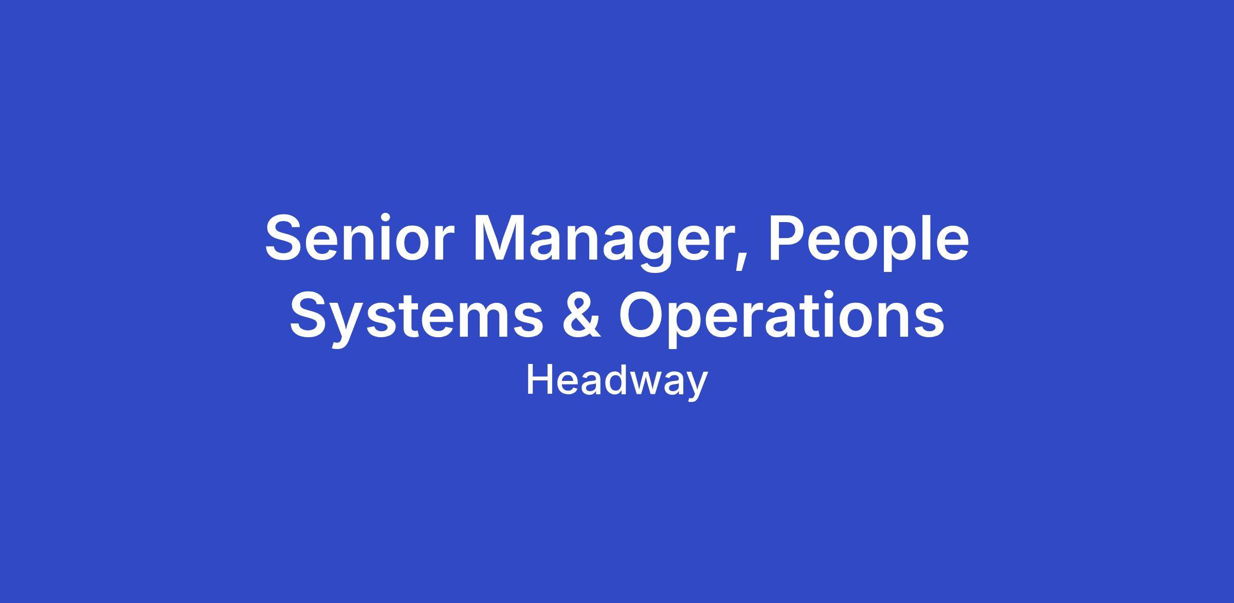 Headway is looking for a Senior Manager, People Systems & Operations to join the People team to lead our HR technology strategy and operations. You will work closely with the Director of Total Rewards and People Operations to build and optimize a scalable People technology ecosystem that supports Headway's growth. This is a unique opportunity to lead a team in managing our systems while enhancing the daily service experience for all Headway employees.