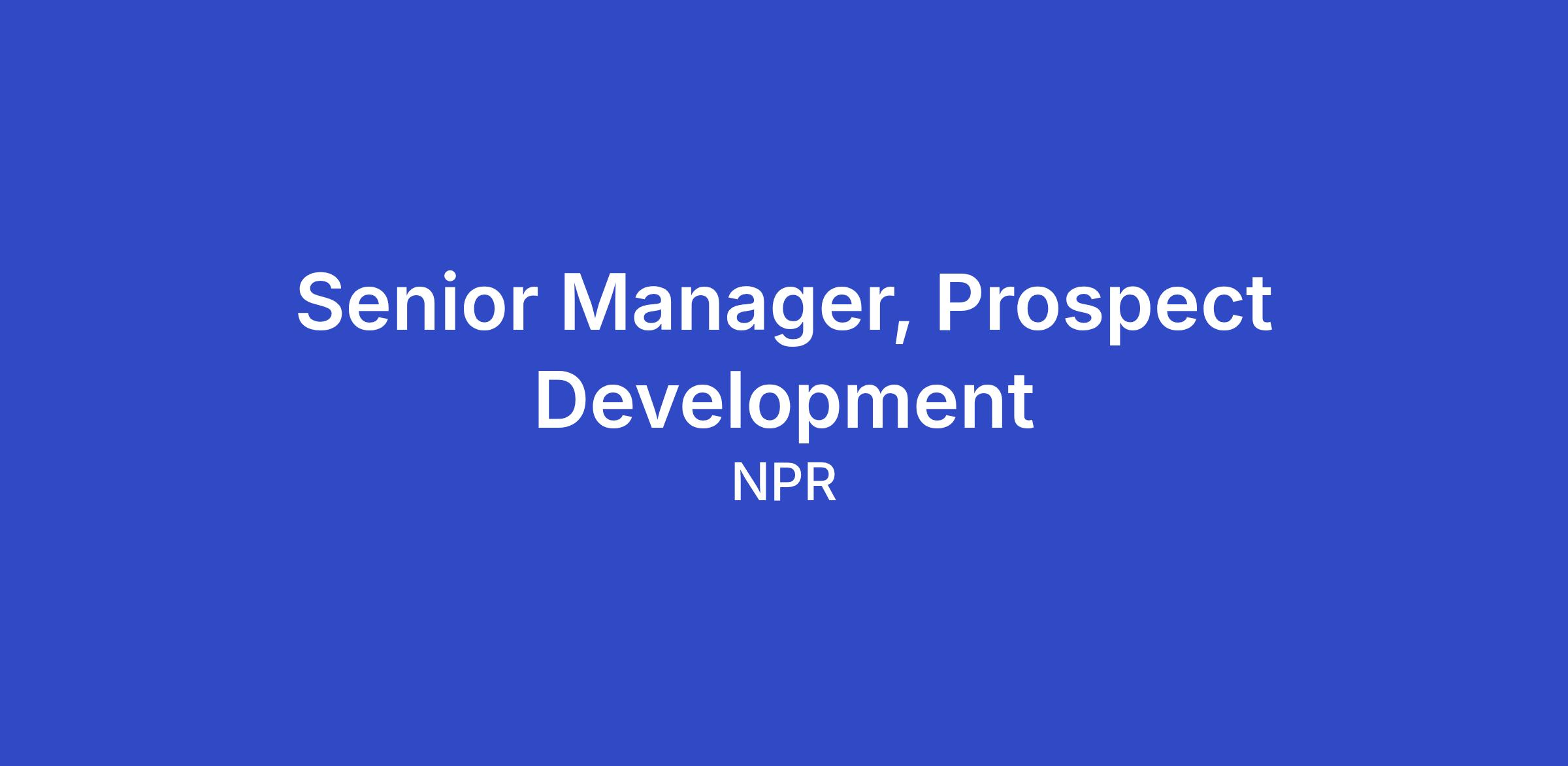 Joining a growing Development division, the Senior Manager of Prospect Development will lead the Prospect Development Team and serve as a strategic partner to the Individual and Institutional Giving teams. This leader will manage the development of high-level research briefings, drive portfolio optimization, and oversee pipeline development to ensure NPR’s fundraising efforts are data-informed and highly-targeted. Beyond prospect development, this individual will act as a key advisor for Salesforce architecture, recommending system enhancements and reports and dashboards necessary to visualize philanthropic impact.