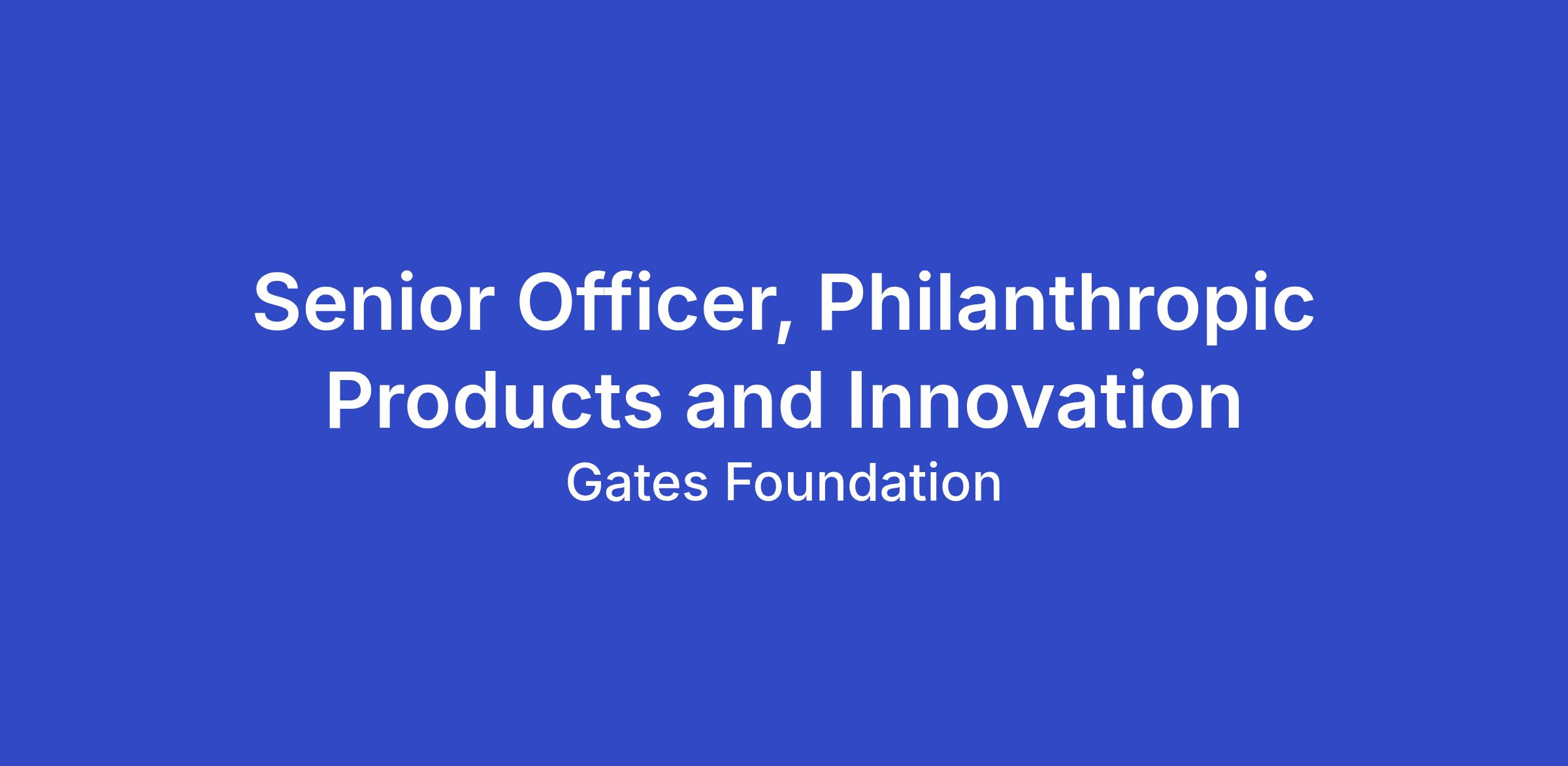 The Senior Officer will be a critical part of the PPT Products & Innovation team. In this role, you will lead the development and creation of flagship philanthropic products that unlock philanthropic capital from UHNW donors for global health & development at scale. We use the term “philanthropic product” to encompass a wide variety of mechanisms to unlock giving at scale, to include: collaborative/pooled funds; high impact, bespoke convenings, advisory services, pitch sessions, and/or grant competitions; blended finance mechanisms; and other innovative vehicles that successfully channel UHNW donor funding at scale. You will also be part of a team responsible for expanding relationships, partnerships, grantmaking, and donor base of Gates Philanthropy Partners’ (GPP) – a 501(c)3 public charity affiliated with the Gates Foundation, and one of the team’s core product offerings.