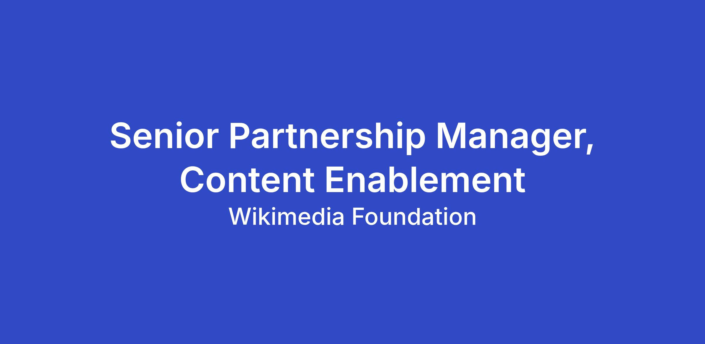 The Wikimedia Foundation is looking for a Senior Partnerships Manager, Content Enablement, to support our contributors by facilitating free access to quality source materials and databases. Reporting to the Director of Content Enablement, you will partner with publishers, aggregators, libraries, and media organizations to advance the Volunteer Support goal and Contributor Experience strategy.