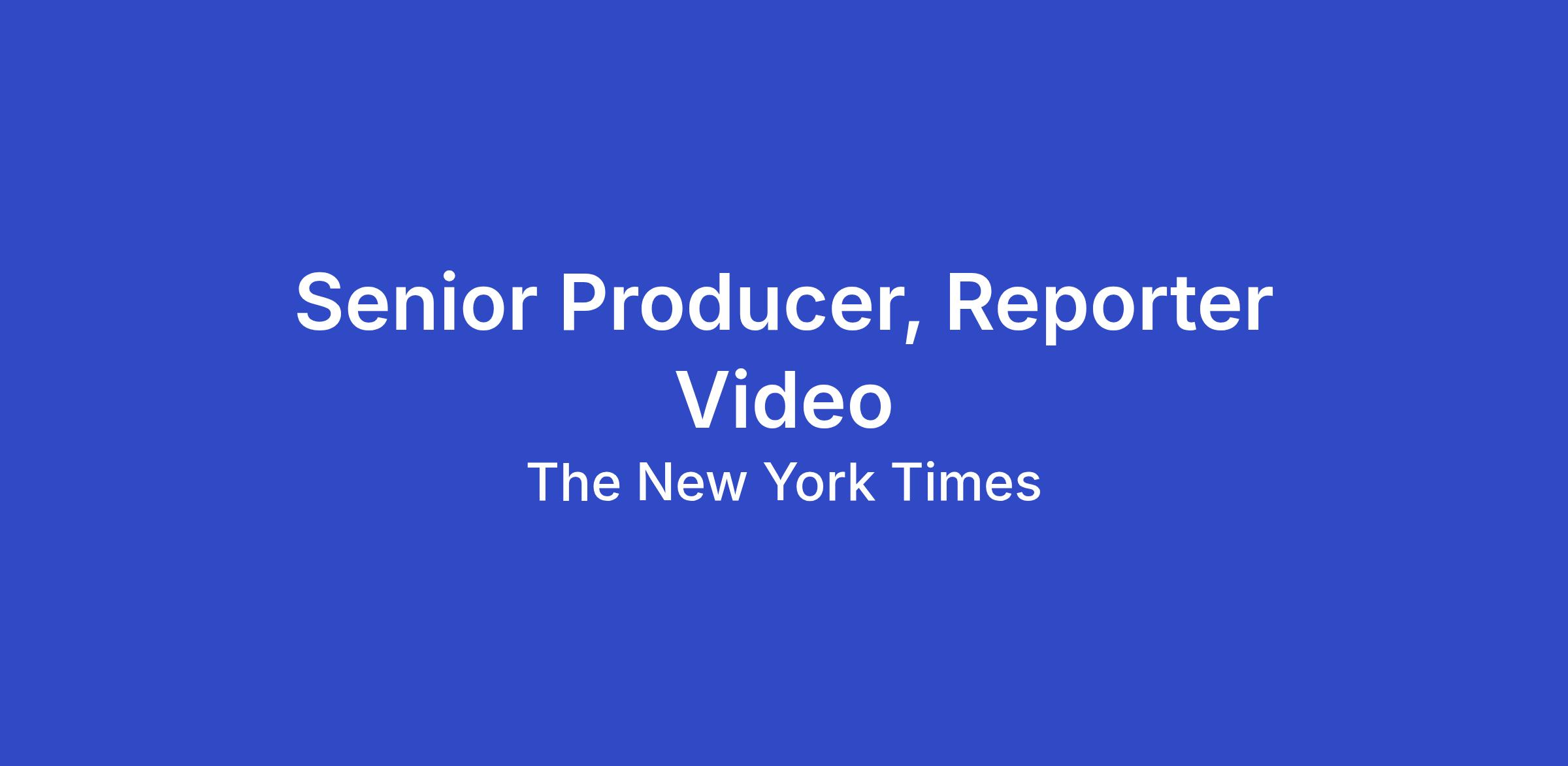 We are looking for a Senior Producer to work on our Reporter Video team, a multi-disciplinary team of video journalists creating groundbreaking, short-form digital journalism. You are a team leader who works autonomously to identify critical stories, vet reporting, and structure powerful videos featuring NYT journalists both on and off platform. An experienced journalist with a track record of making sound editorial decisions is essential. Experience working on news, features, enterprise and investigative projects is an asset.