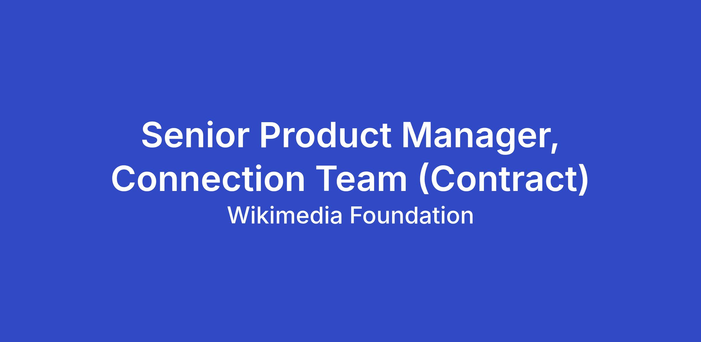 Wikimedia is looking for an experienced product manager (contract) for the Connection team in our Product department to cover for a parental leave. The Product department builds the wiki experiences that enable our communities to achieve our vision: a world in which every single human being can freely share in the sum of all knowledge. This is an opportunity to have a tremendous impact with one of the most beloved parts of the internet.