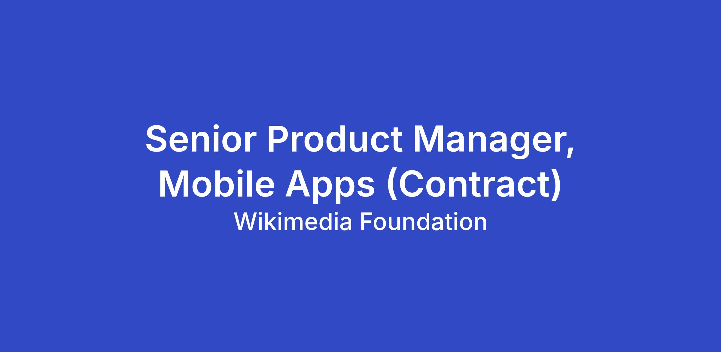 Wikimedia is looking for an experienced product manager (6-month contract) for the Mobile Apps team in our Product department. The Product department builds the wiki experiences that enable our communities to achieve our vision: a world in which every single human being can freely share in the sum of all knowledge. This is an opportunity to have a tremendous impact on one of the most beloved parts of the internet.