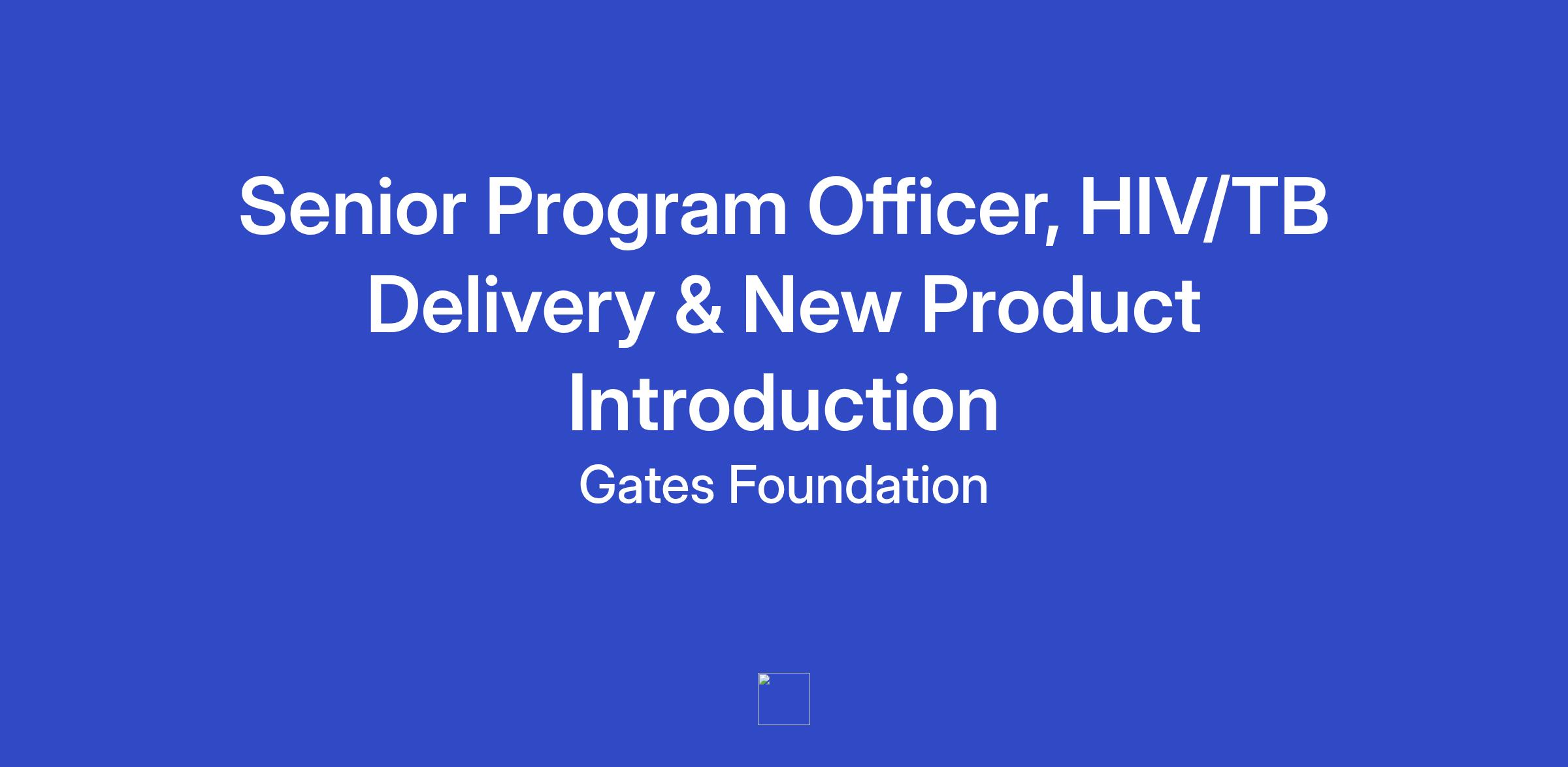 As a Senior Program Officer (SPO), HIV/TB Delivery and Introduction, you will lead and manage a dynamic portfolio of grants and investments supporting the scale-up of HIV prevention and treatment programs, with a strong focus on the introduction and delivery of new biomedical interventions, including long-acting PrEP as well as new technologies such as AI for self-care. You will play a central role in setting and executing strategic direction, driving alignment across global and country stakeholders, and ensuring innovative, evidence-based and sustainable approaches to HIV service delivery. This includes serving as a liaison with country governments, funders, pharmaceutical companies and key implementing partners in selected priority countries (e.g., Malawi, South Africa, Zimbabwe, Mozambique and Zambia).
