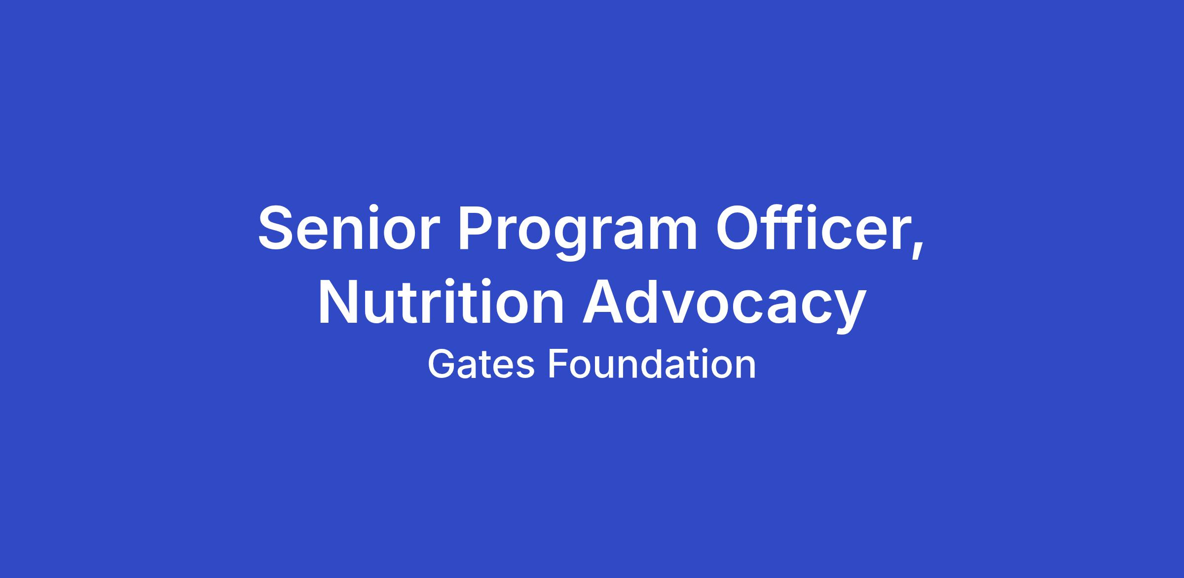 The Interim Senior Program Officer (SPO) will be responsible for implementing advocacy and communications strategies to advance the policy, financing, and leverage goals of the foundation’s Nutrition programs. The foundation’s nutrition work is included in three Program Strategy Teams (PSTs): Large-Scale Food Fortification, Nutrition Food Systems (within the Agricultural Development team); and the Maternal, Newborn, and Child Nutrition and Health team. Across these three portfolios, we aim to strengthen policies and secure the financing partnerships that are critical to unlock greater investment in upstream R&D as well as program delivery and scaling.