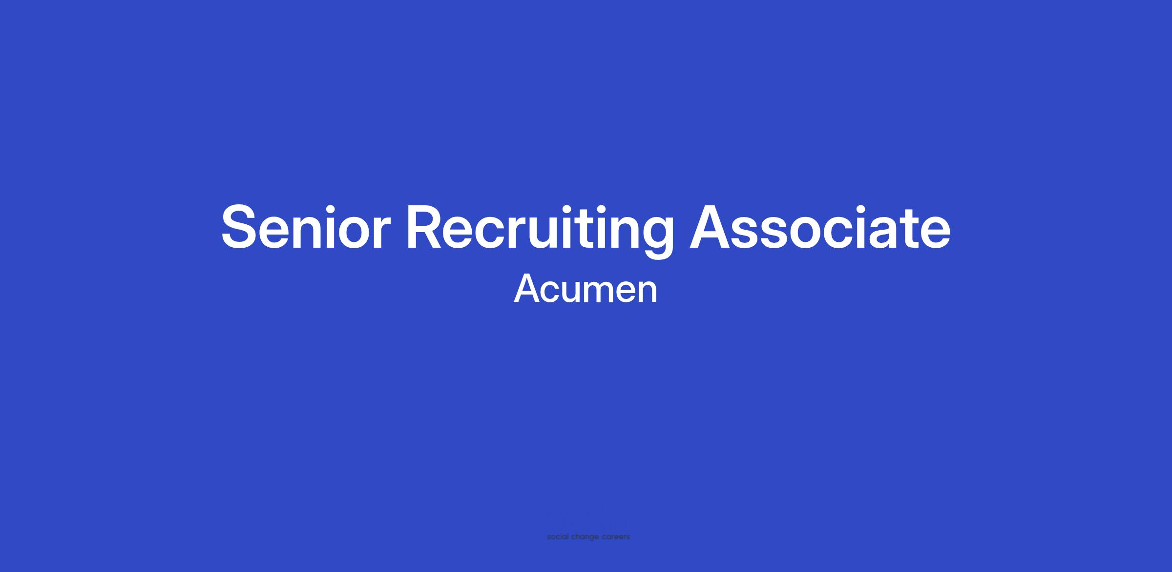 Acumen is looking for an Senior Associate Recruiter with 3 - 5 years of experience to join our Talent Team in New York City. If your people skills are good (you’re curious about their skills and experiences), you are comfortable with transparency of pay, and can learn how to use our software, we’re happy to speak with you. This role is located in NYC (lower Manhattan). We work in a hybrid model, 3 days in the office per week (Tuesday, Wednesday, Thursday).