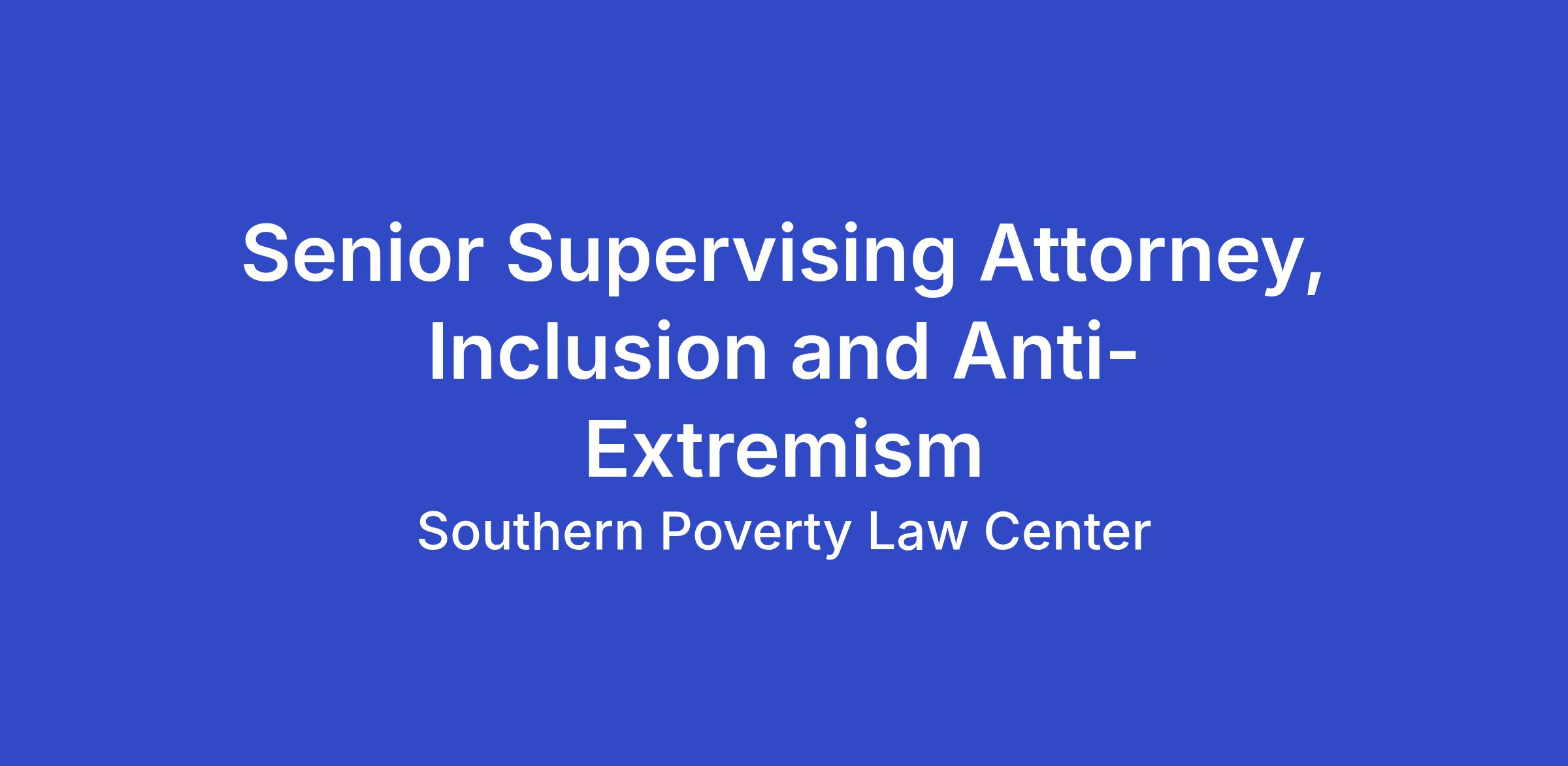 The Senior Supervising Attorney (SSA) in the Inclusion and Anti-Extremism (IAE) Advocacy and Litigation Impact Team (ALIT) develops, litigate, and supervises cases against hate groups and other actors perpetrating hateful and extremist activity. The position provides opportunities to work on cases and campaigns vindicating and advancing the rights of individuals and communities, including among others, people of color, religious minorities, LGBTQ people, and immigrants, targeted by extremists and hate groups.