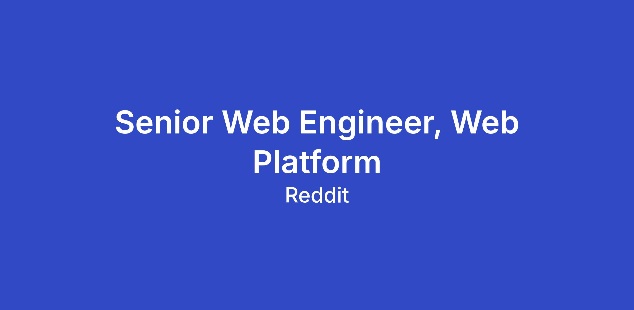 Build with impact: Design and evolve the Shreddit web platform’s architecture, performance, and developer tooling that powers reddit.com for hundreds of millions of users across the world.Own the web stack: Lead end‑to‑end delivery of complex, cross‑service initiatives in areas like asset delivery, html processing, observability and reliability for core web experiences.Collaborate broadly: Partner with feature teams, infrastructure, safety, security and other platform teams to make Reddit’s web experience fast, stable, and accessible worldwide.Multiply others: Mentor and coach other engineers through design reviews, pairing, and documentation, raising the bar for web engineering across Reddit.Shape the platform: Be a thought partner in our web platform strategy, informing our roadmap for performance as a feature, observability, and developer experience.