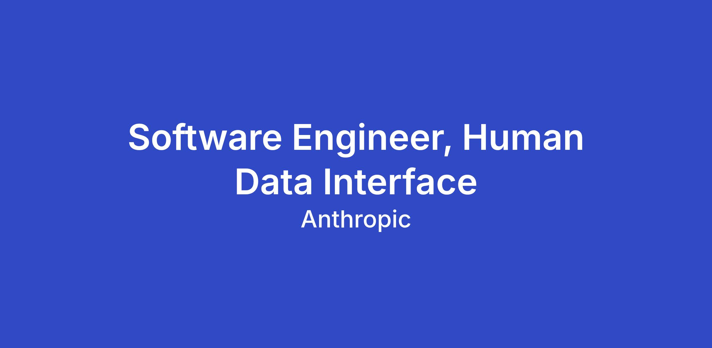 Anthropic's Human Data Interfaces team builds the systems that collect data to improve our models. This includes novel interfaces for data vendors, tooling, and front-end and back-end infrastructure that enables researchers to gather high-quality data at scale. As a Software Engineer, you'll own the architecture and execution of our data collection pipelines — designing systems that are both performant at scale and resilient to the rapidly changing needs of our research teams. You'll work closely with researchers, our cross-functional data operations partners, and the crowdworkers and vendors who use these tools day-to-day.