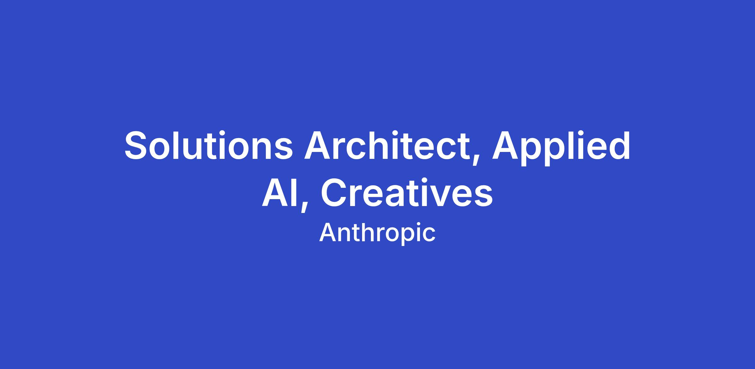 Anthropic is seeking a Solutions Architect to serve as the technical lead for our partnerships with cultural institutions, creative communities, and artists. In this role, you will bridge the gap between Anthropic's cutting-edge AI capabilities and the creative professionals who can benefit from them.