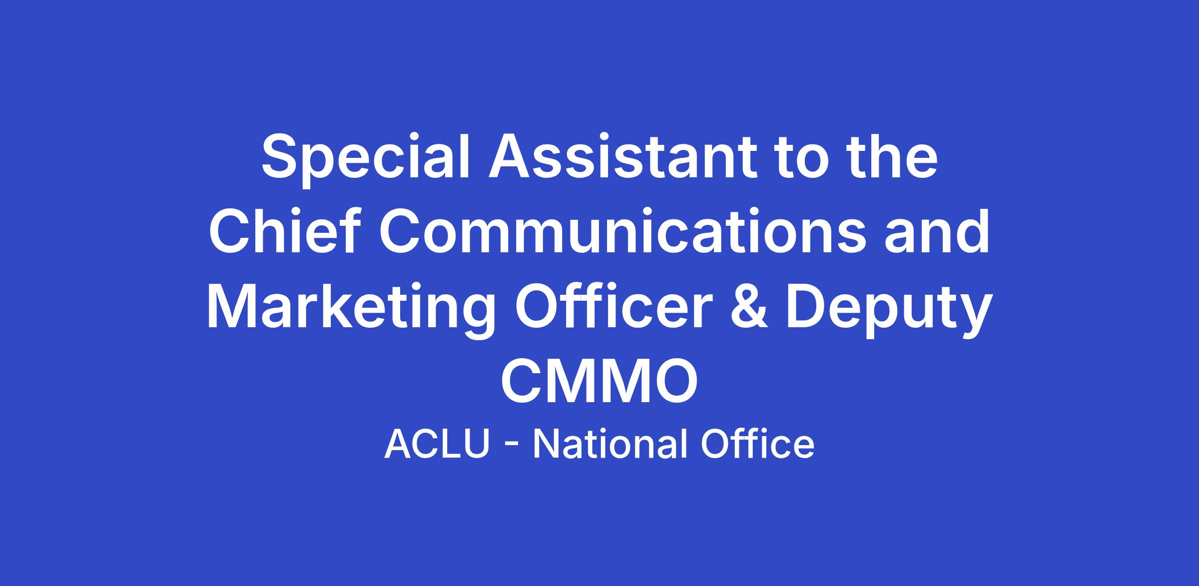 The ACLU seeks applicants for the full-time position of Special Assistant to the Chief Communications and Marketing Officer & Deputy Chief Communications and Marketing Officer in the Communications and Marketing Department of the ACLU’s National office in New York, NY or Washington, DC. This is a hybrid role that has in-office requirements of two (2) days per week or eight (8) days per month.