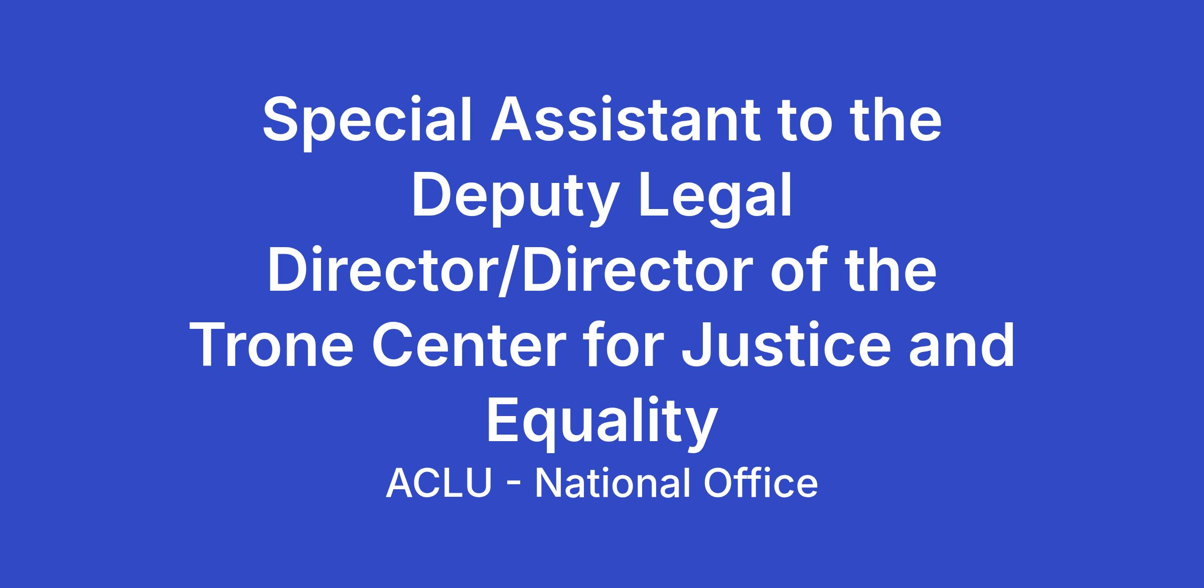 The ACLU seeks applicants for the full-time position of Special Assistant to the Deputy Legal Director/Director of the Trone Center in the Legal Department of the ACLU’s National office in New York, NY. This is a hybrid role that has in-office requirements of two (2) days per week or eight (8) days per month.